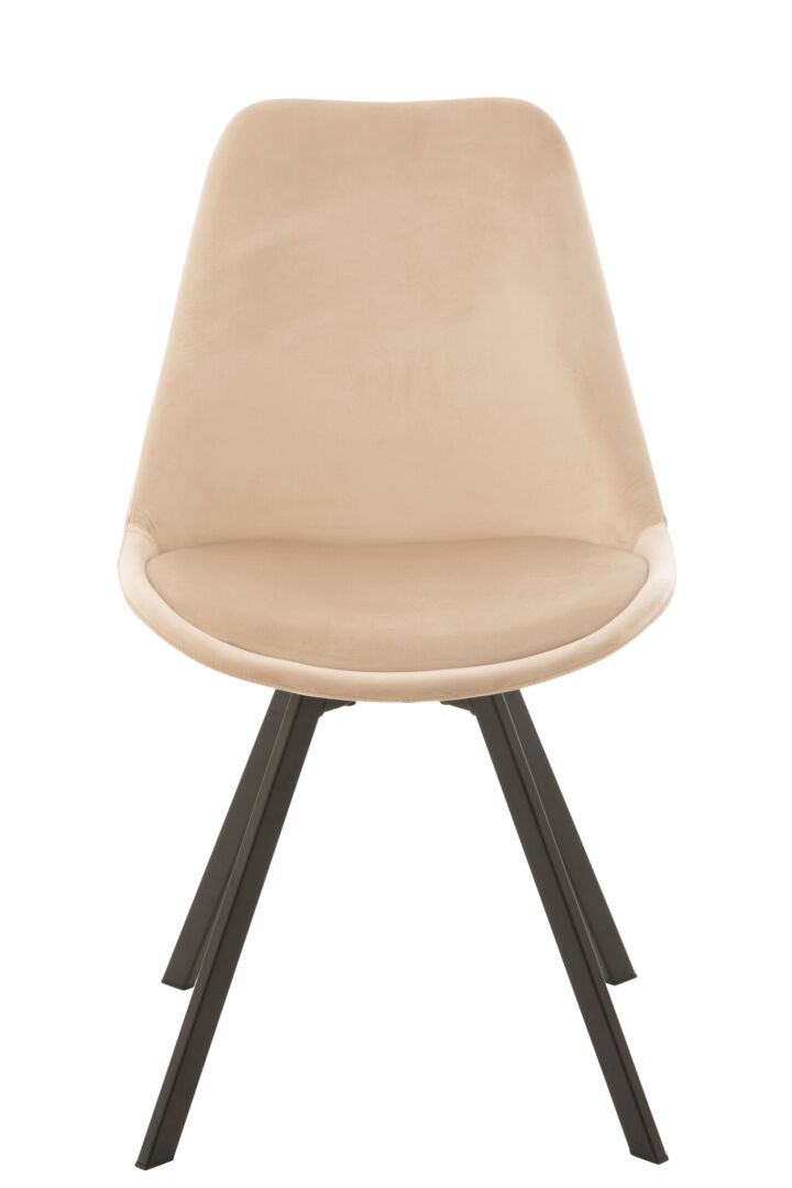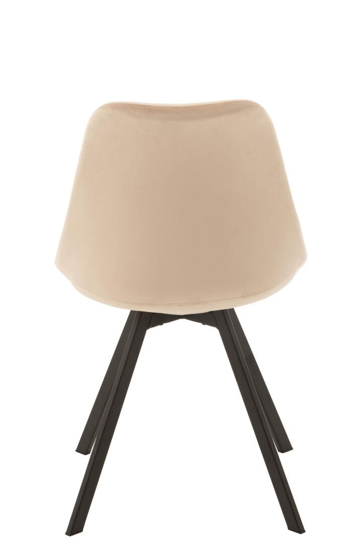 Strakke lijnen, eerlijke materialen en moeiteloos zitgemak komen hier samen aan tafel. De beige zitting met zachte stof rust op een matzwarte metalen basis en voelt tegelijk licht en solide.