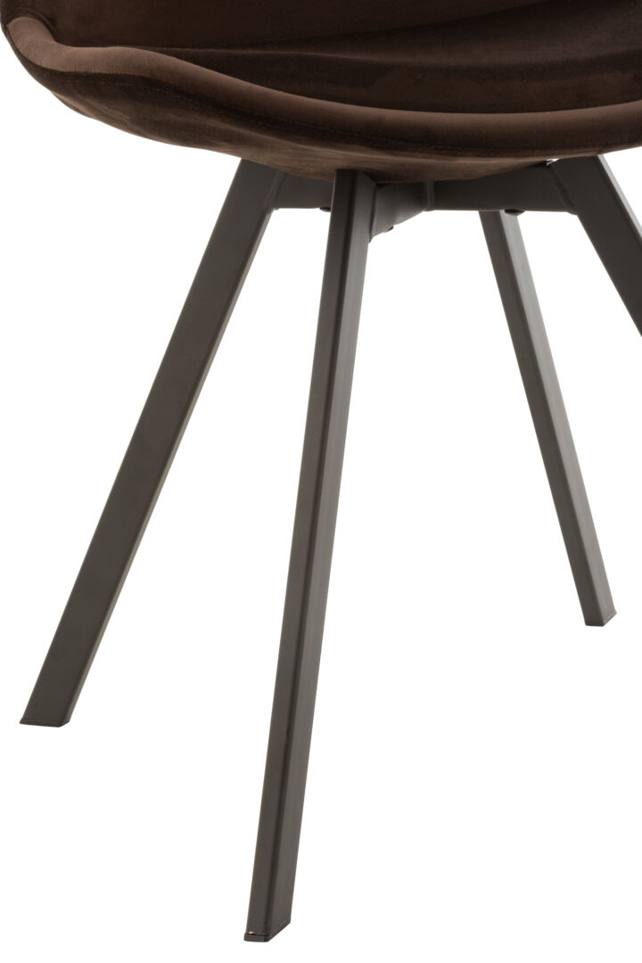 Materiaal: metaal 45%, kunststof 30%, multiplex 10%, schuim 9%, textiel 6%. Onderhoud: afnemen met een zachte doek; vlekken plaatselijk reinigen. Afmetingen: B49 × D55 × H84 cm; zithoogte 49 cm. Gewicht 5,64 kg; max. draagkracht 100 kg. Kleur: donkerbruin. Collectie: Winter 2021. Levertijd: ca. 5 dagen.
