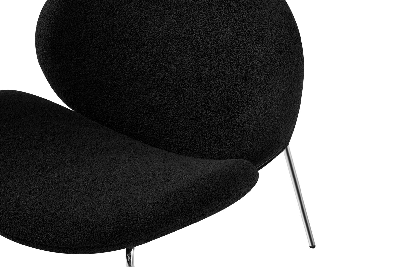 - Constructie: multiplex kuip met veerkrachtige schuimvulling, 100% polyester bouclé, onderstel van ijzer