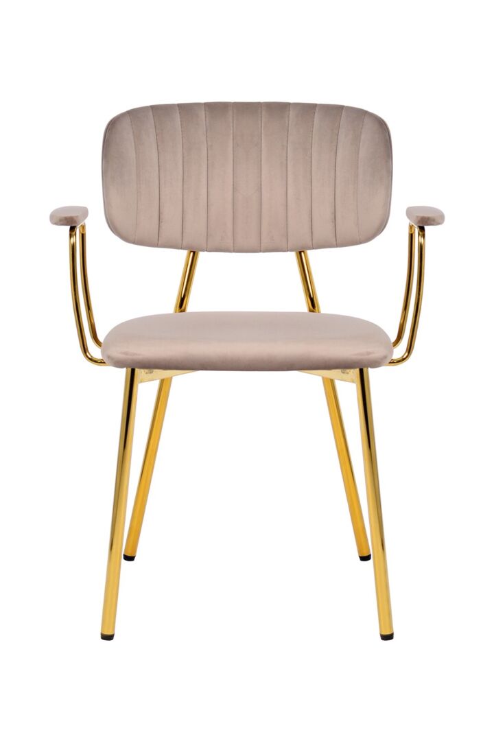 Upgrade je eethoek met deze 2‑delige eetkamerstoelen-set: ruimtebesparend en comfortabel met gewatteerde zitting en rug met sierstiksels, geïntegreerde armleuningen en fluweelzachte bekleding (100% polyester). Stevig onderstel van 100% ijzer. Taupe, matcht met Kian-serie.