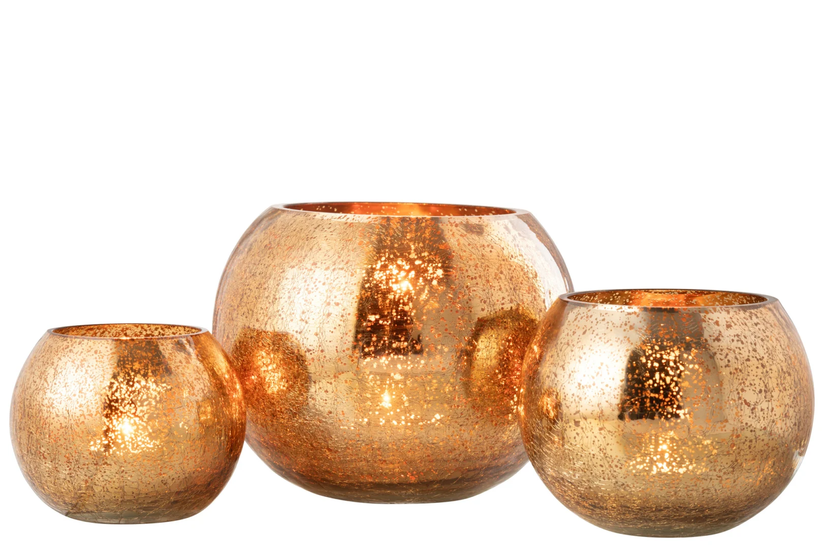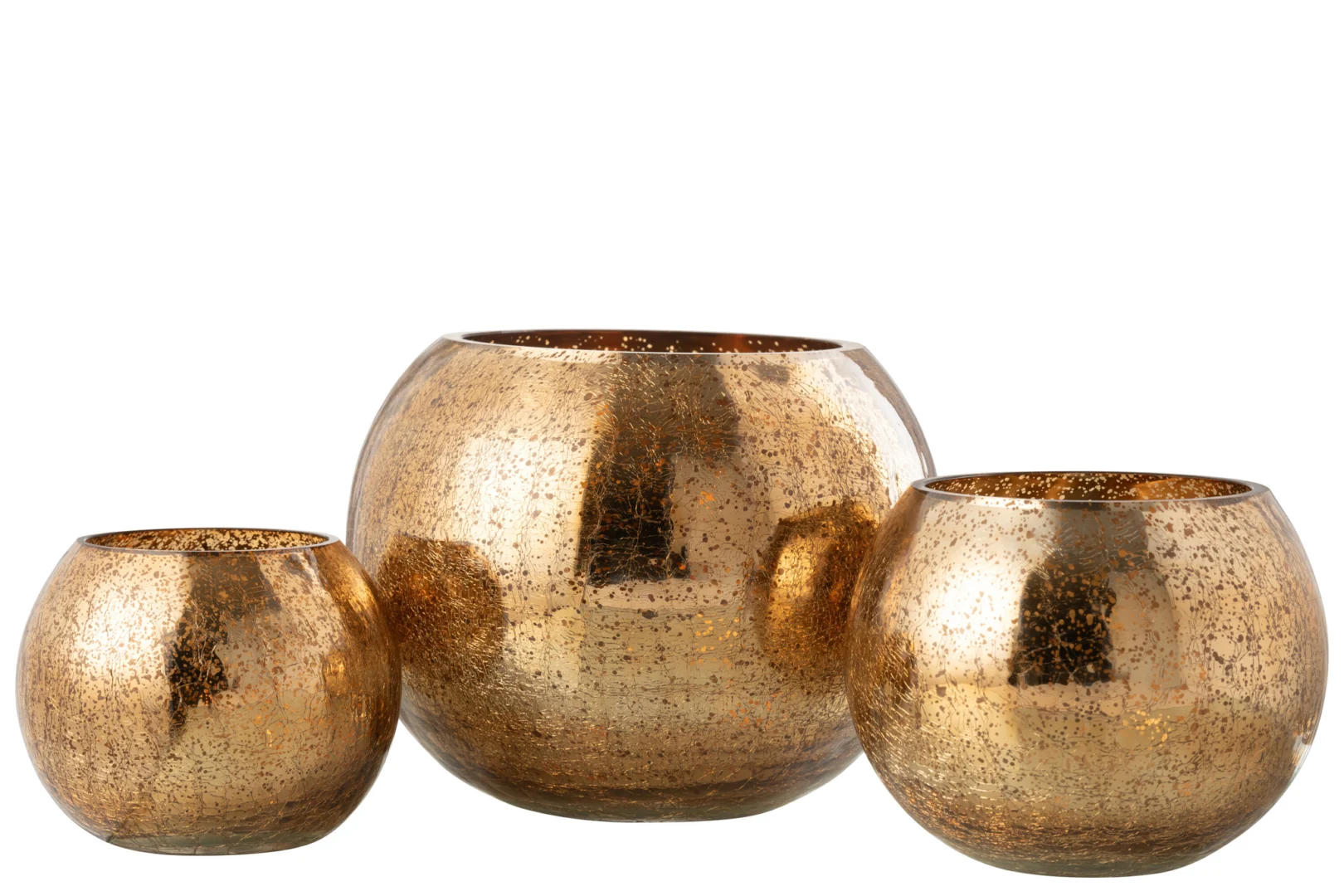 Tijdens een diner bij kaarslicht zorgt deze glazen theelichthouder voor sfeervol, warm licht. De donkere goudtint en het craquelé-patroon geven een luxe uitstraling. Wel is het relatief zwaar. Ideaal voor wie een statige tafeldecoratie zoekt. Solide aankoop voor binnengebruik.