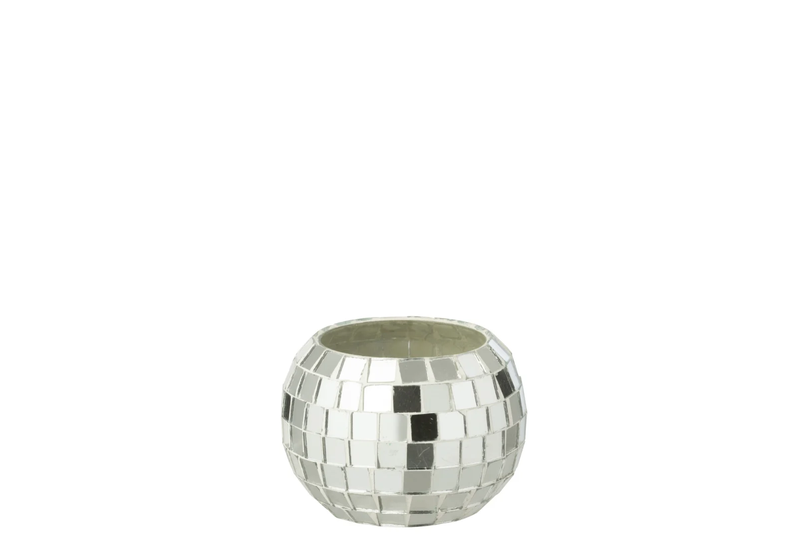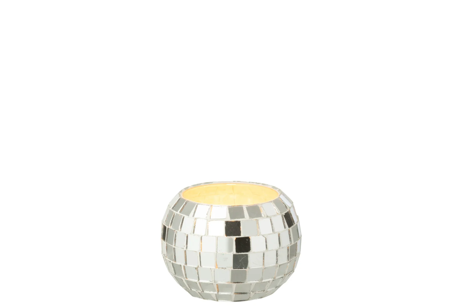Tijdens een rustig diner zorgt deze theelichthouder voor een zachte, glinsterende sfeer. Het mozaïekglas verspreidt mooi licht en de zilverkleur is stijlvol. Door het lichte gewicht voelt het wat kwetsbaar aan. Geschikt voor liefhebbers van sfeervolle tafeldecoratie. Een verfijnde keuze.