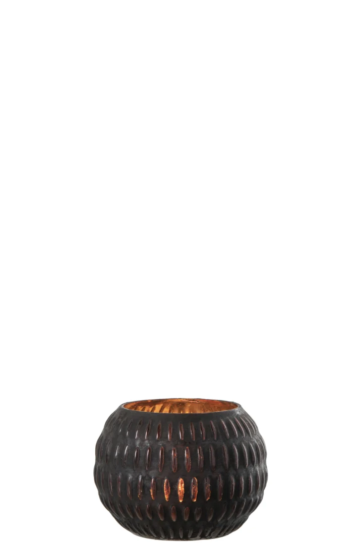 Deze glazen theelichthouder zorgt voor een warme gloed tijdens een diner of avond op de bank. Het gestreepte bruine glas oogt stijlvol en stevig. Door het formaat past er slechts één standaard theelicht in. Ideaal voor liefhebbers van subtiele decoratie.