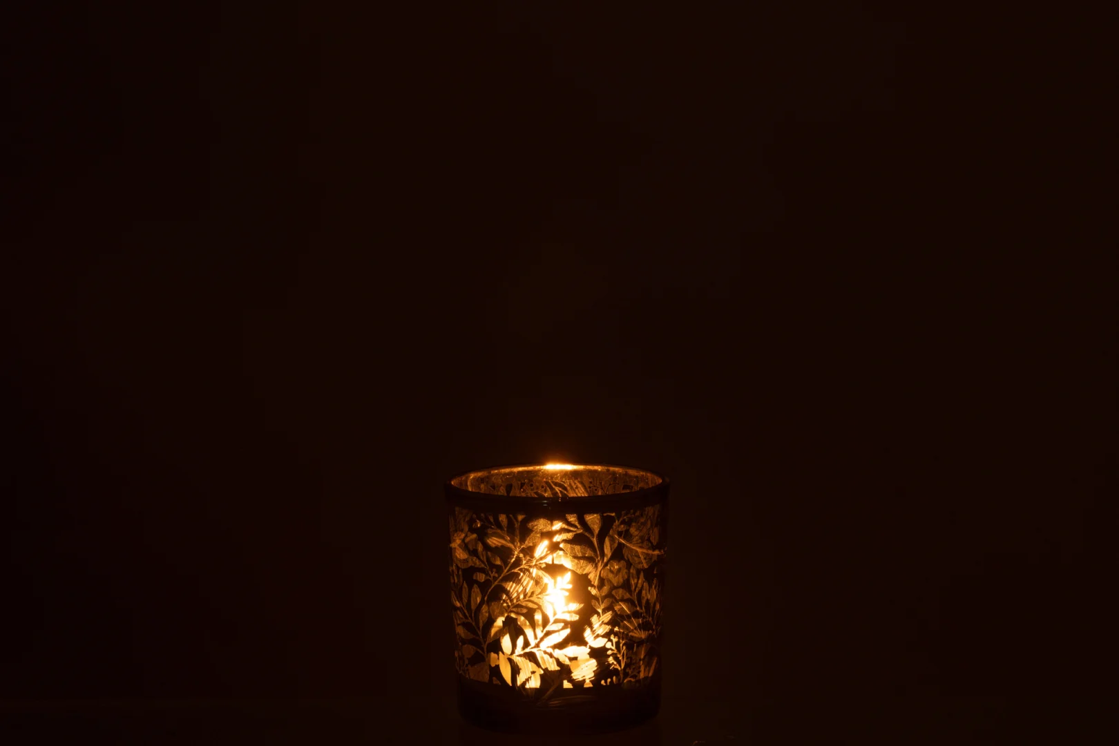 Deze theelichthouder voegt subtiel warmte toe op donkere winteravonden. Het glas met bladmotief verspreidt sfeervol licht en de antiek gouden accenten zijn mooi verfijnd. Minder geschikt voor grotere kaarsen. Ideaal voor liefhebbers van ingetogen, decoratieve verlichting. Prima keuze.