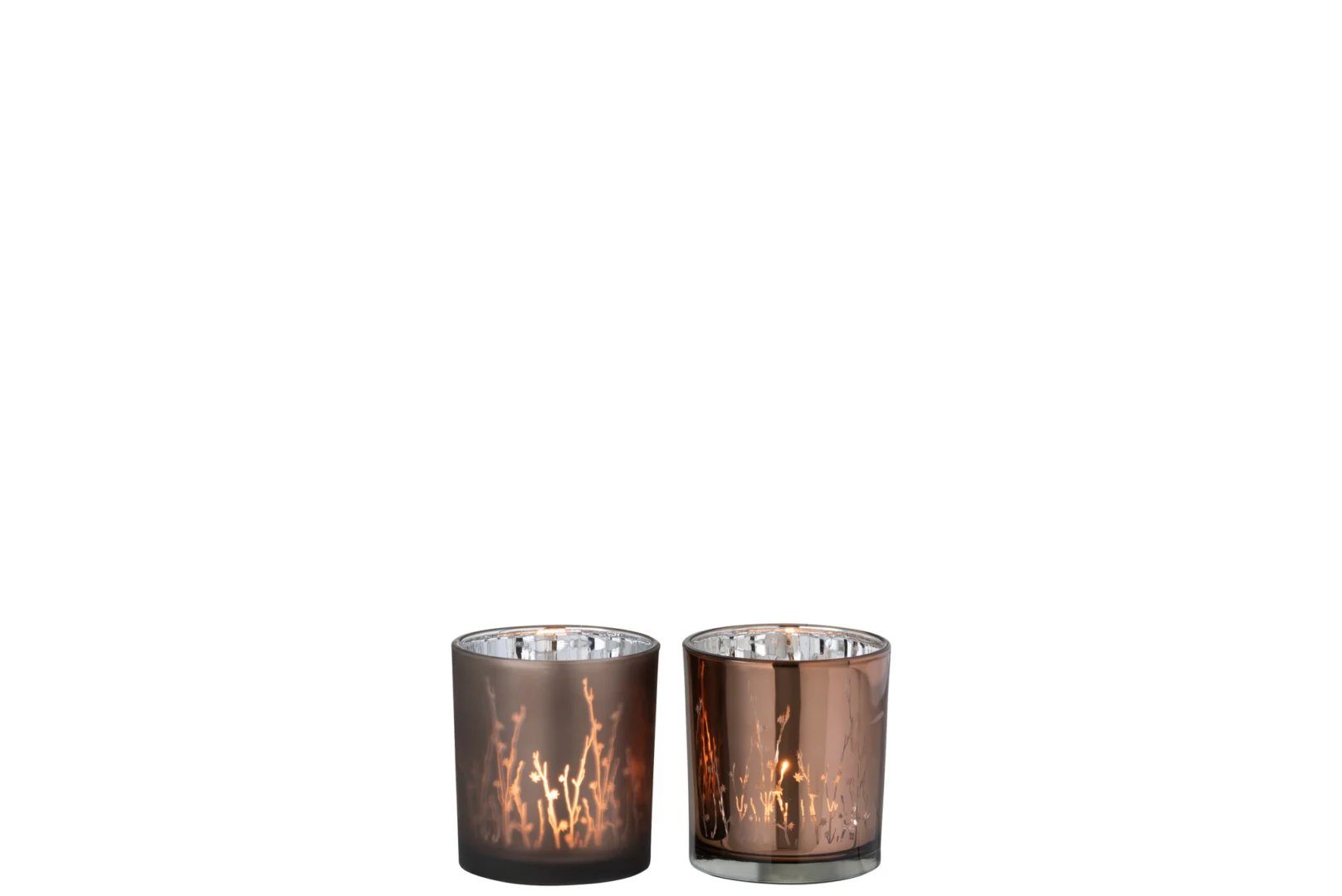 Tijdens een ontspannen diner creëren deze glazen theelichthouders direct een warme sfeer. Het bruine glas verspreidt zacht licht en het lichte gewicht maakt verplaatsen eenvoudig. Ze zijn wel wat klein. Ideaal voor sfeerliefhebbers met oog voor detail. Zeker het overwegen waard.