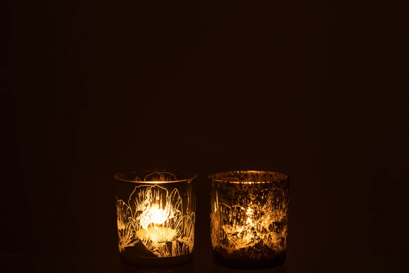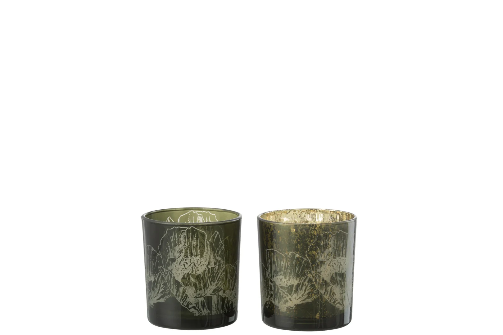 Theelichthouder Bloemen Glas Kakigroen Antiek Klein Set van 2