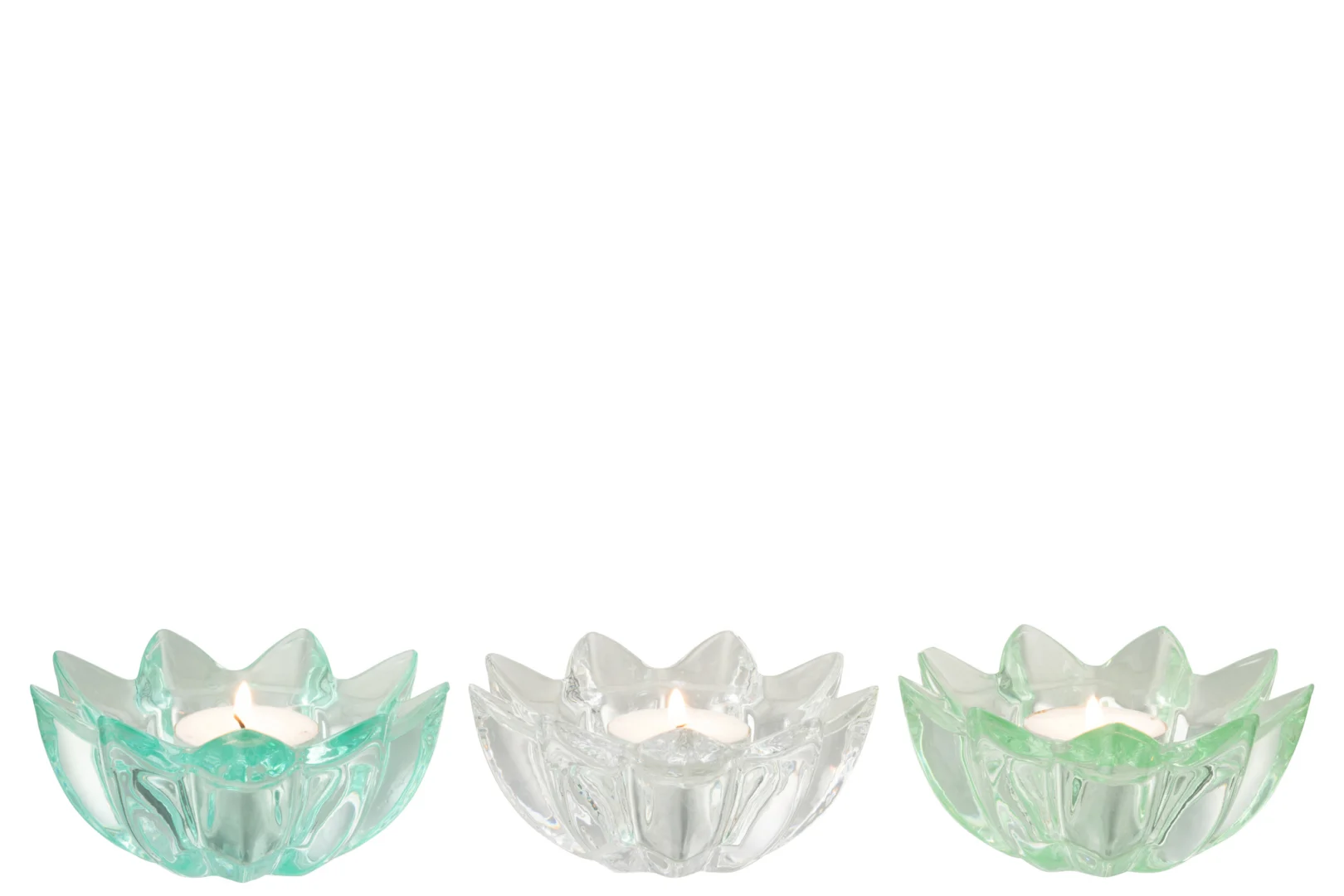 Theelichthouder Bloemen Glas Koud Mix Set van 3