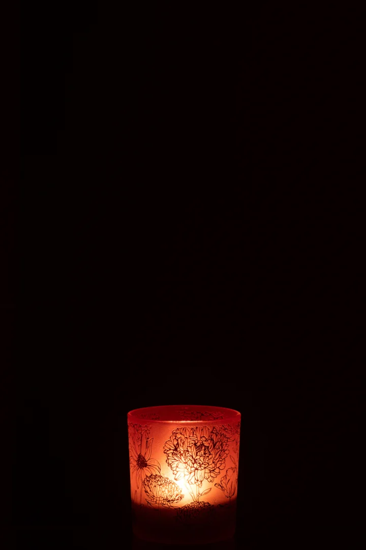 Dit kleine glazen theelicht voegt subtiele warmte toe aan een winterdiner of avond op de bank. De matte afwerking met rode en gouden tinten oogt sfeervol. Het is kwetsbaar bij verplaatsen. Geschikt voor liefhebbers van verfijnde, seizoensgebonden decoratie.