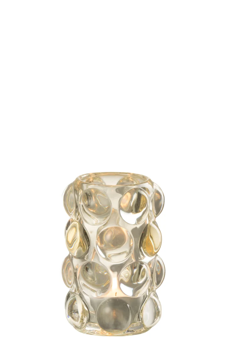 Dankzij het stevige glas staat hij betrouwbaar en verspreidt hij een zachte, sfeervolle gloed. Ideaal voor theelichtjes of votives en leuk om te groeperen voor een speels effect. Past bij moderne, Scandinavische of boho stijlen en fleurt elke ruimte moeiteloos op.