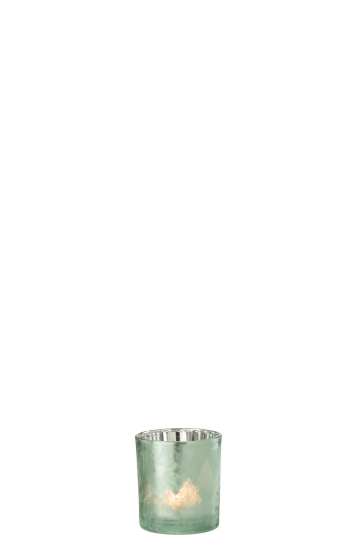 Breng direct warmte en stijl in huis met deze glazen kaarsenhouder in fris groen. Het compacte formaat maakt hem perfect voor op de eettafel, salontafel of vensterbank.