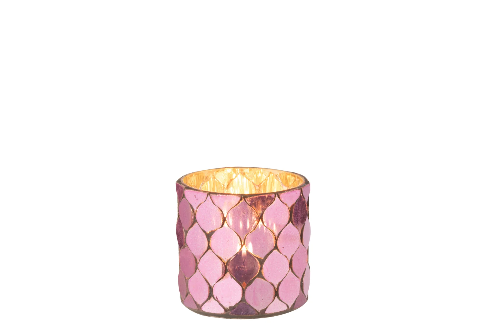 Deze theelichthouder geeft een subtiel roze licht en past goed op kleine tafels of vensterbanken. Het mozaïekglas zorgt voor sfeervolle reflecties. Het compacte formaat is handig, maar laat weinig ruimte voor grotere kaarsen. Ideaal voor liefhebbers van ingetogen decor.