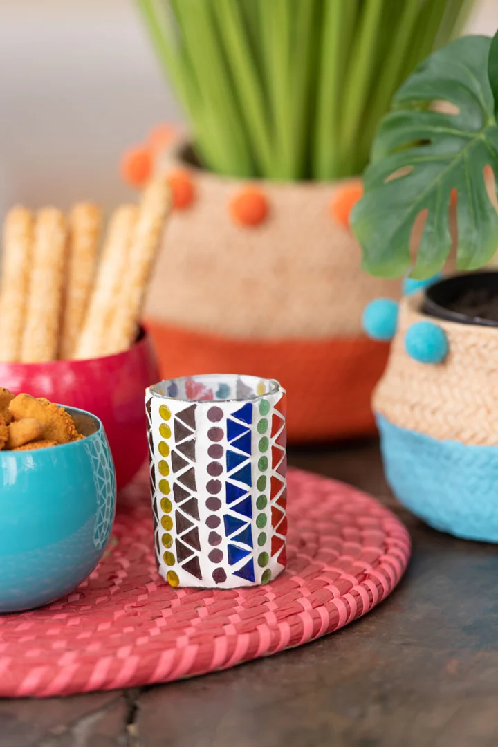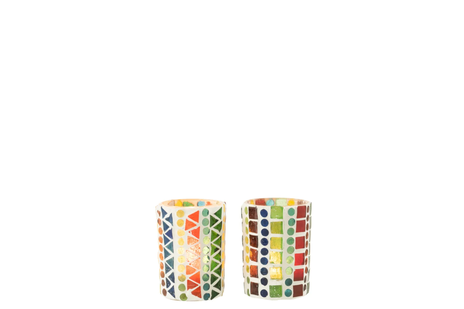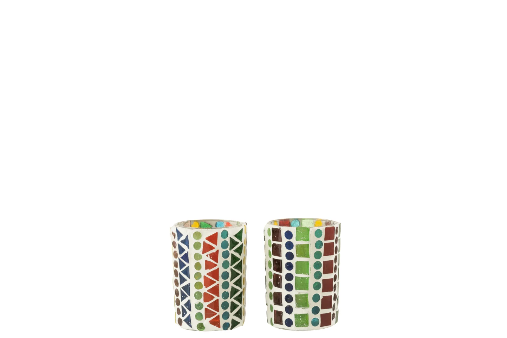Tijdens een zomerse borrel op het terras voegt deze theelichthouder direct sfeer toe. Het mozaïekglas reflecteert warm licht en de stevige cementbasis voorkomt omvallen. Minder geschikt voor grotere kaarsen, maar ideaal voor liefhebbers van kleurrijke, compacte decoraties. Zeker een aanrader.