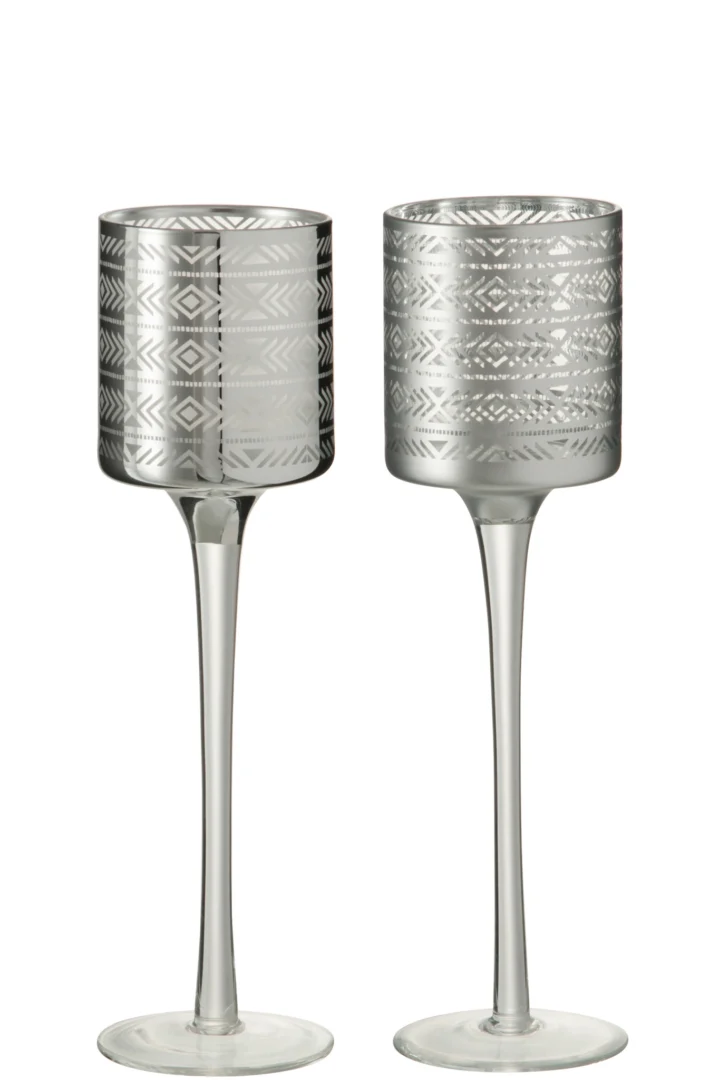Theelichthouder Etnisch Glas Zilver Klein Set 2