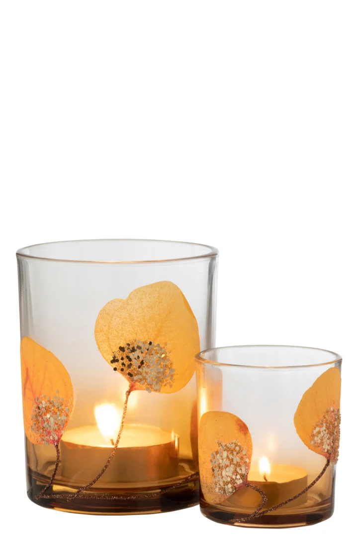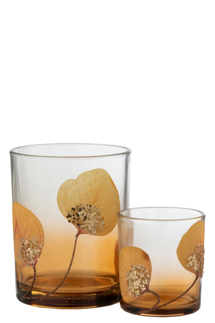 Breng meteen warmte in huis met deze glazen kaarshouder in een sfeervolle okergouden tint. Compact van formaat en groots in uitstraling: ideaal voor gezellige avonden, diners of een fijn moment voor jezelf.