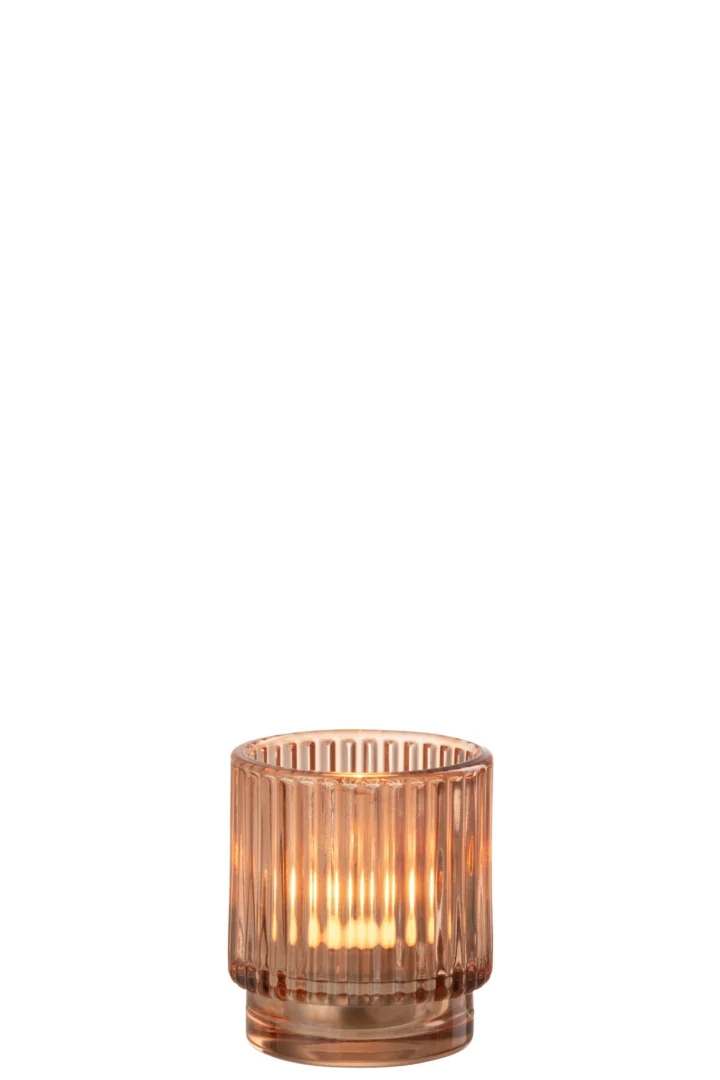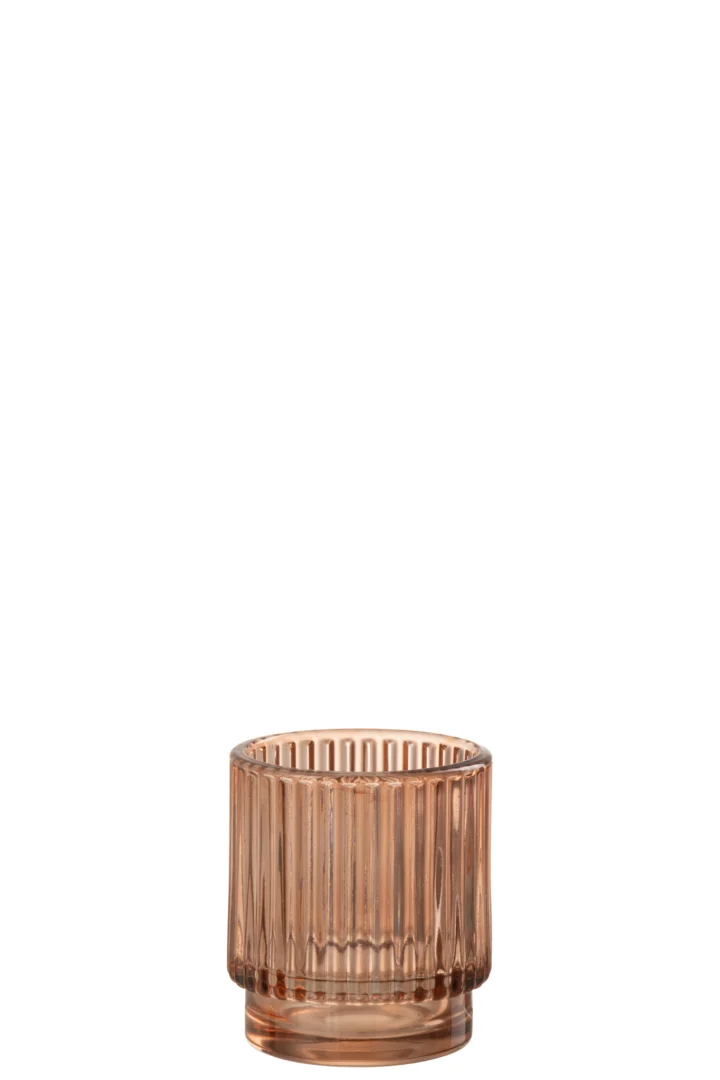 Theelichthouder Gestreept Glas Bruin Klein