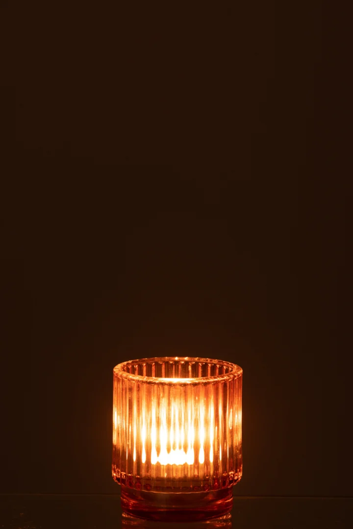 Het getinte glas verzacht het kaarslicht, waardoor een rustgevende, amberachtige gloed ontstaat. Ideaal voor theelichtjes en kleine votives tijdens een diner, borrel of relaxmoment. Dankzij het compacte design combineer je er eenvoudig meerdere voor een speels lichtaccent in je interieur.