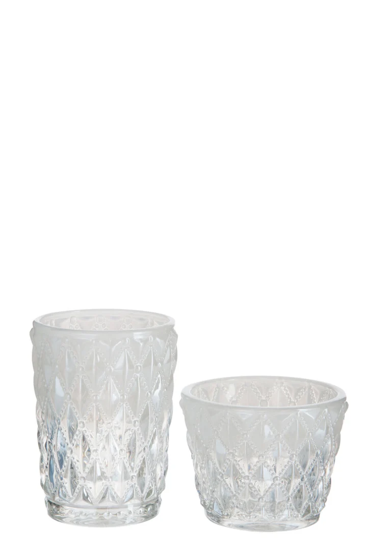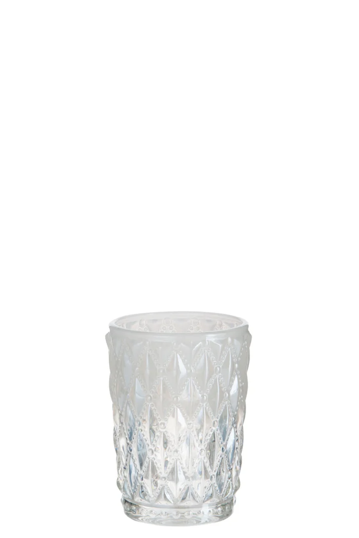 Breng een warme, sprankelende sfeer in huis met deze transparante kaarsenhouder van glas. Het compacte formaat van 6 x 6 x 9 cm maakt hem ideaal voor theelichtjes of een kleine stompkaars, zonder te overheersen op tafel of vensterbank.