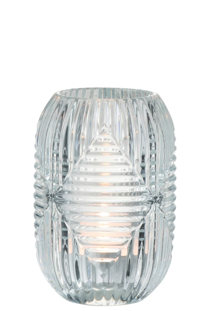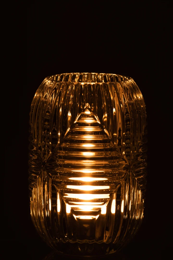 Breng direct sfeer in huis met deze transparante kaarsenhouder in compact formaat. Het heldere design laat het vlammetje prachtig stralen en past moeiteloos in elke stijl, van modern tot klassiek.