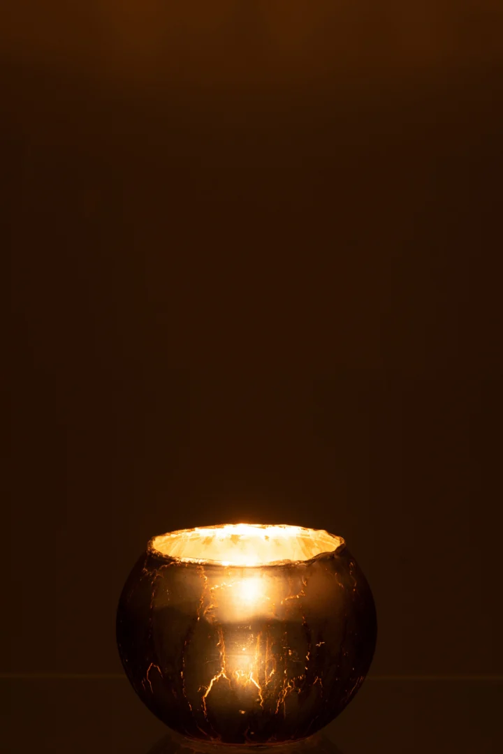 Plaats hem op de salontafel, vensterbank of eettafel voor directe sfeer. Het glas weerspiegelt het vlammetje subtiel, waardoor een warme gloed ontstaat die rust en gezelligheid brengt. Mooi solo of te combineren met andere glazen accessoires.
