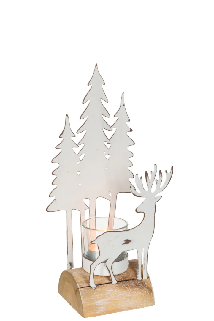 Deze kandelaar zorgt voor sfeervol kaarslicht tijdens diners, feestdagen of een ontspannen avond thuis. Combineer er meerdere voor een speels hoogte-effect of laat ‘m solo stralen als subtiele blikvanger. Het ijzer geeft stabiliteit, het hout voegt warmte toe en het glas zorgt voor een verfijnde glans.