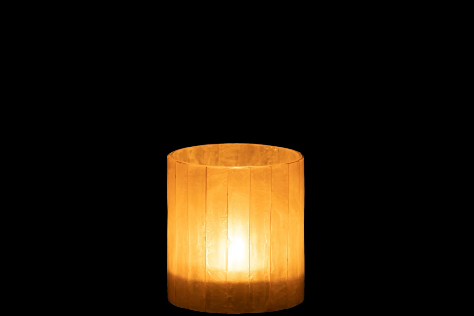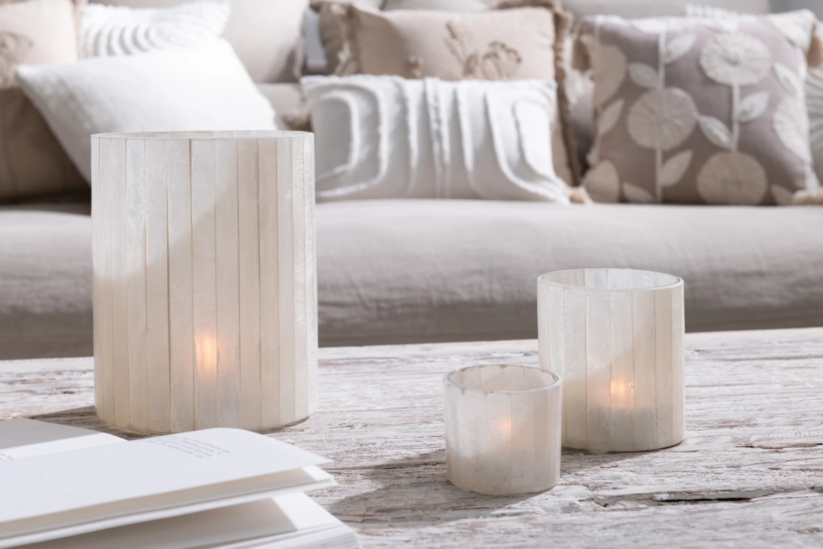 Creëer in een handomdraai gezelligheid: zet één stuk neer voor subtiele sfeer of combineer meerdere voor een stijlvol centerpiece. Perfect voor dineravonden, relaxmomenten in de badkamer of een zomers tuinfeest. Het witte glas versterkt het kaarslicht zonder te overheersen.