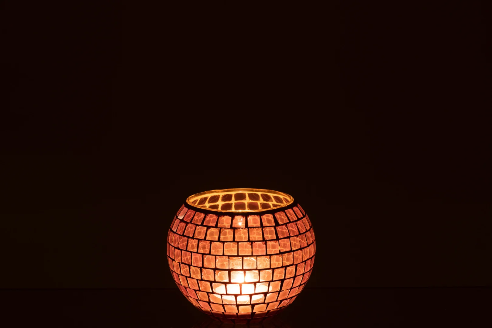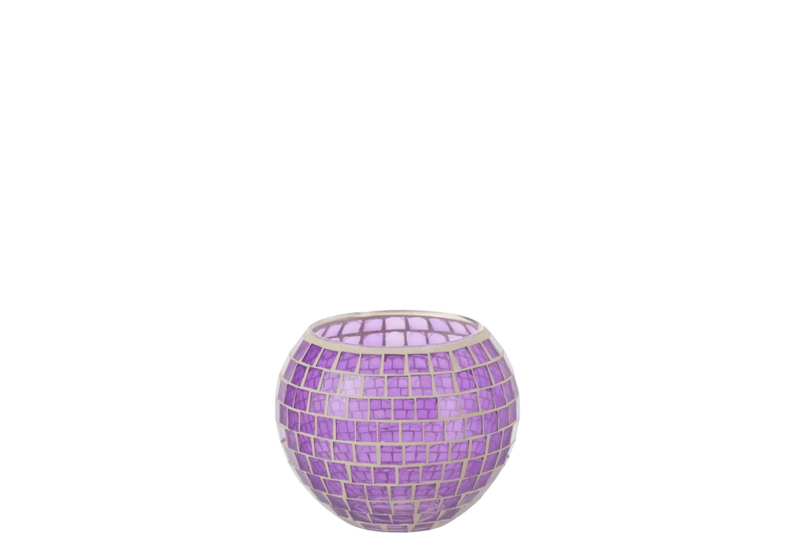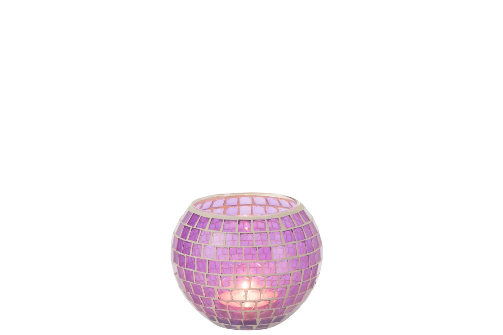 Bij een rustige avond op de bank zorgt deze glazen theelichthouder voor een zachte, paarse gloed. Het mozaïekpatroon reflecteert sfeervol licht en het stevige gewicht voorkomt omvallen. Minder geschikt voor kleine ruimtes door het vrij grote formaat. Ideaal voor liefhebbers van warme accenten. Een doordachte aankoop voor extra sfeer.