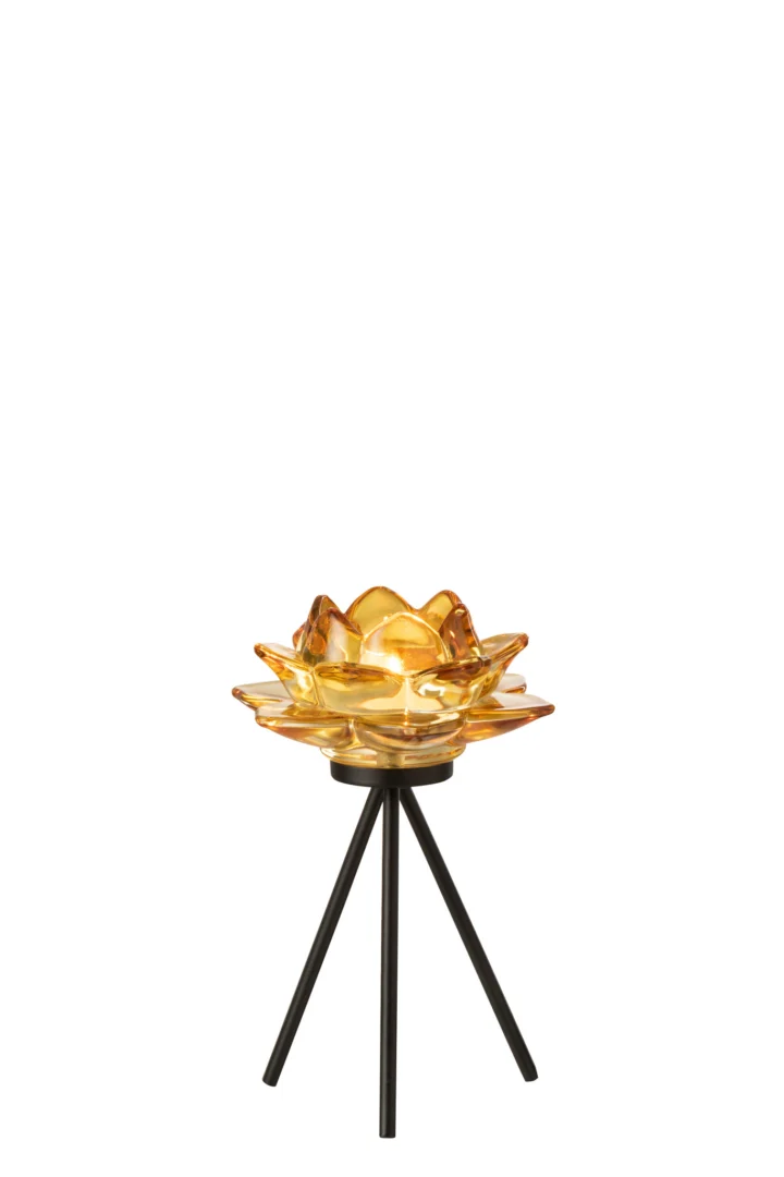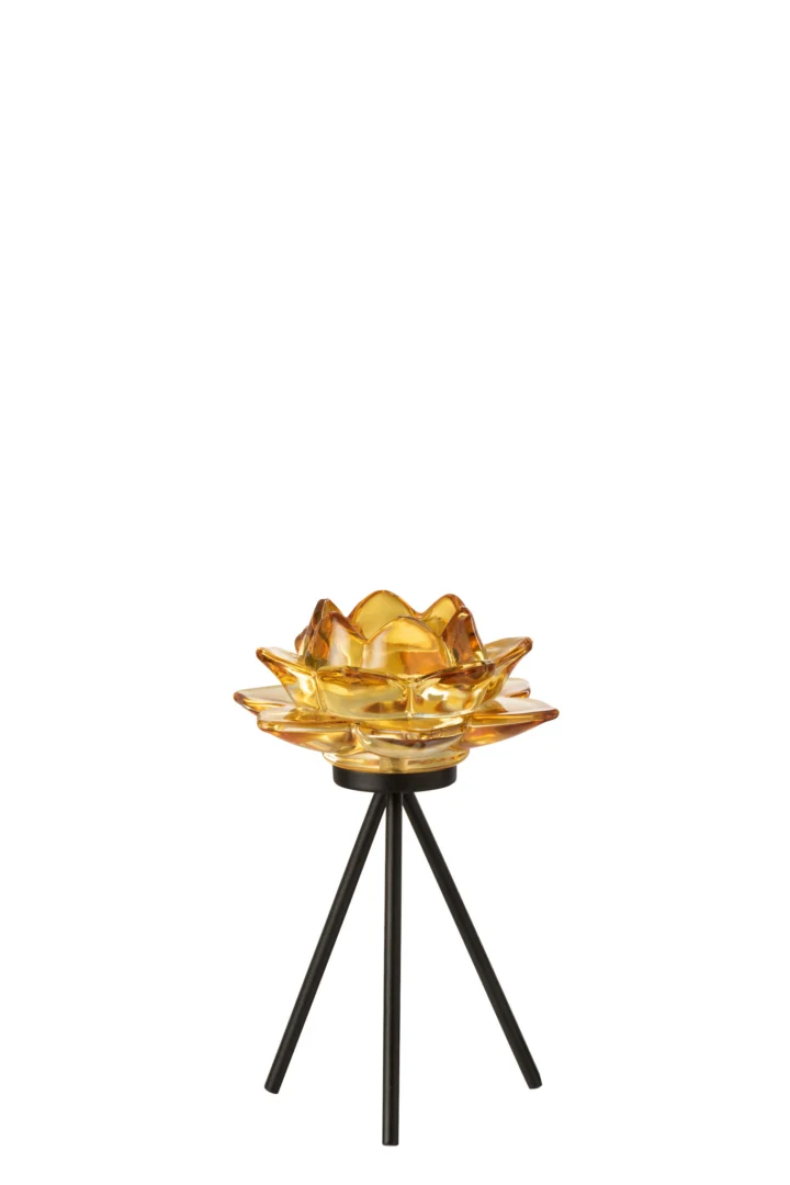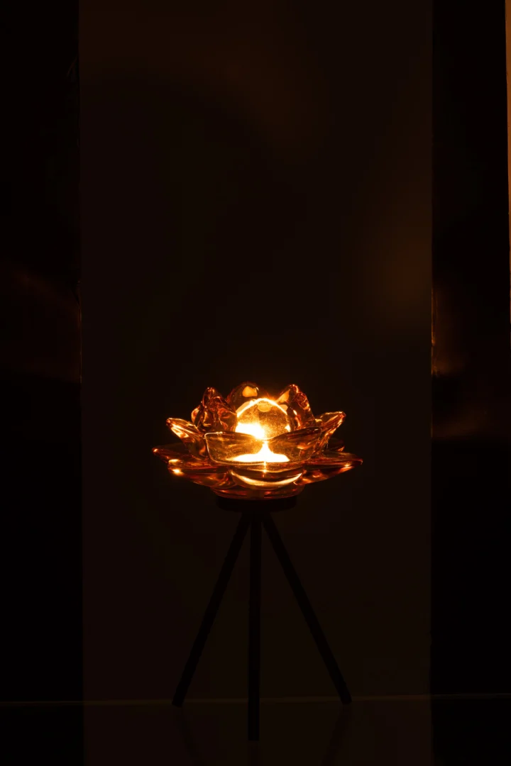 Deze theelichthouder geeft een zomerse sfeer aan een donkere vensterbank. Het transparante glas verspreidt warm licht, terwijl de metalen voet stabiliteit geeft. Door het compacte formaat past hij overal, al is hij wat kwetsbaar. Ideaal voor sfeerliefhebbers. Een stijlvolle aanwinst.