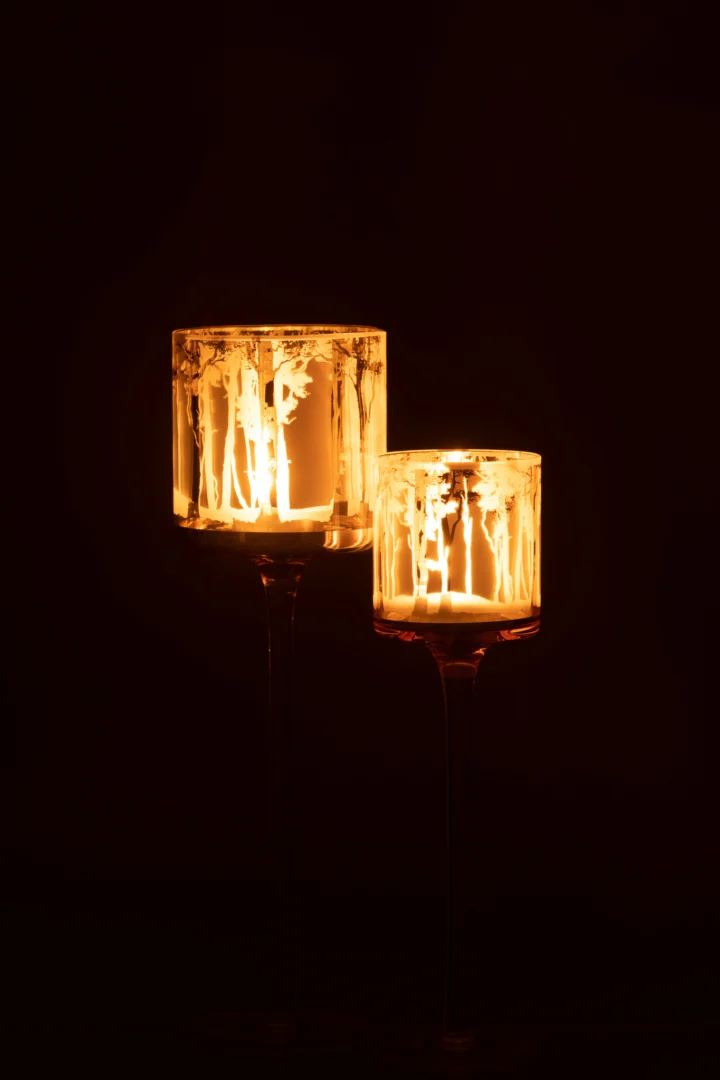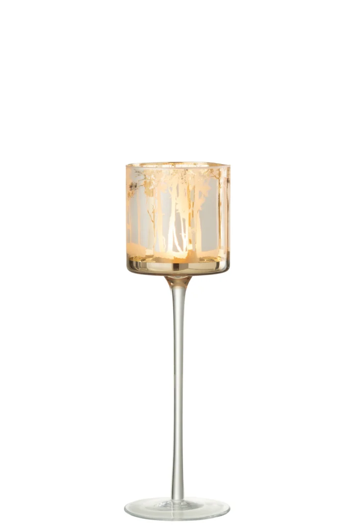 Geef je interieur een warme glans met deze goudkleurige kaarsenhouder van glas. Met zijn elegante hoogte van 30 cm brengt hij direct sfeer aan tafel, op het dressoir of in de vensterbank.