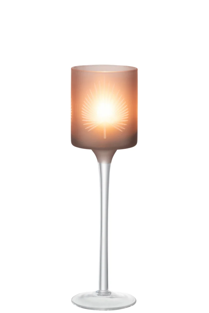 Breng direct warmte en gezelligheid in huis met deze slanke kaarsenhouder van bruin glas. De subtiele tint laat het kaarslicht prachtig sprankelen en voegt sfeer toe aan elke ruimte, van eettafel tot vensterbank.