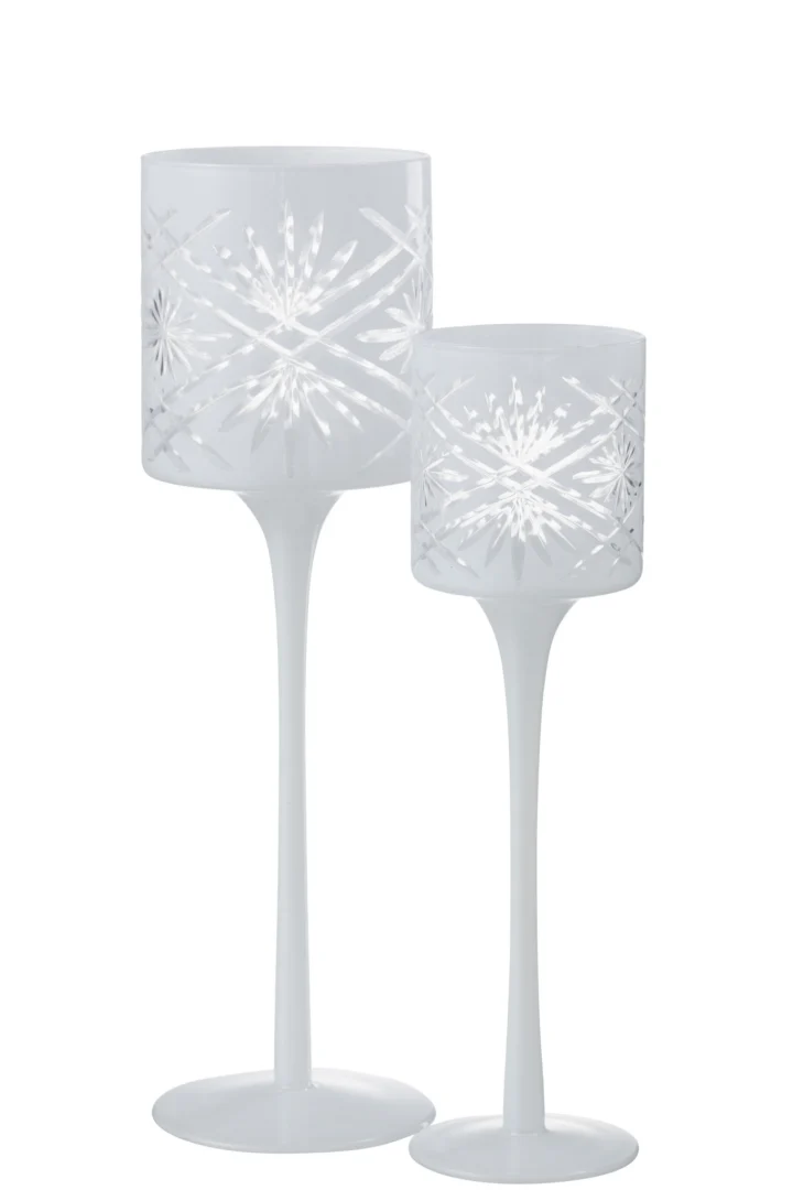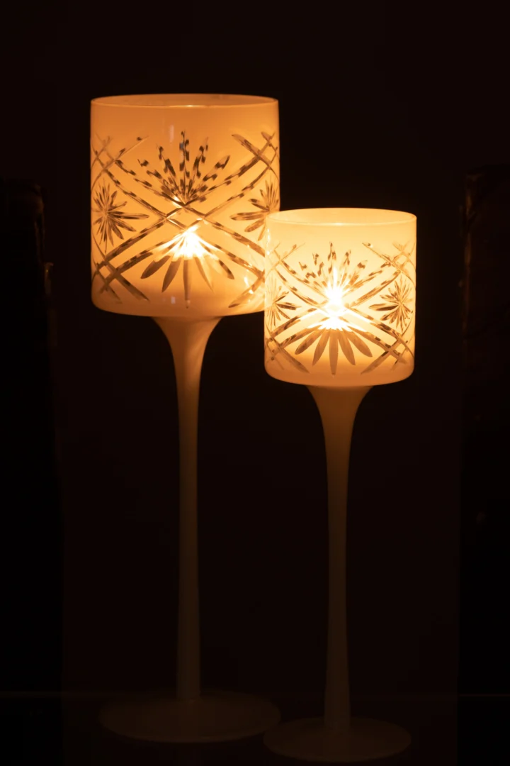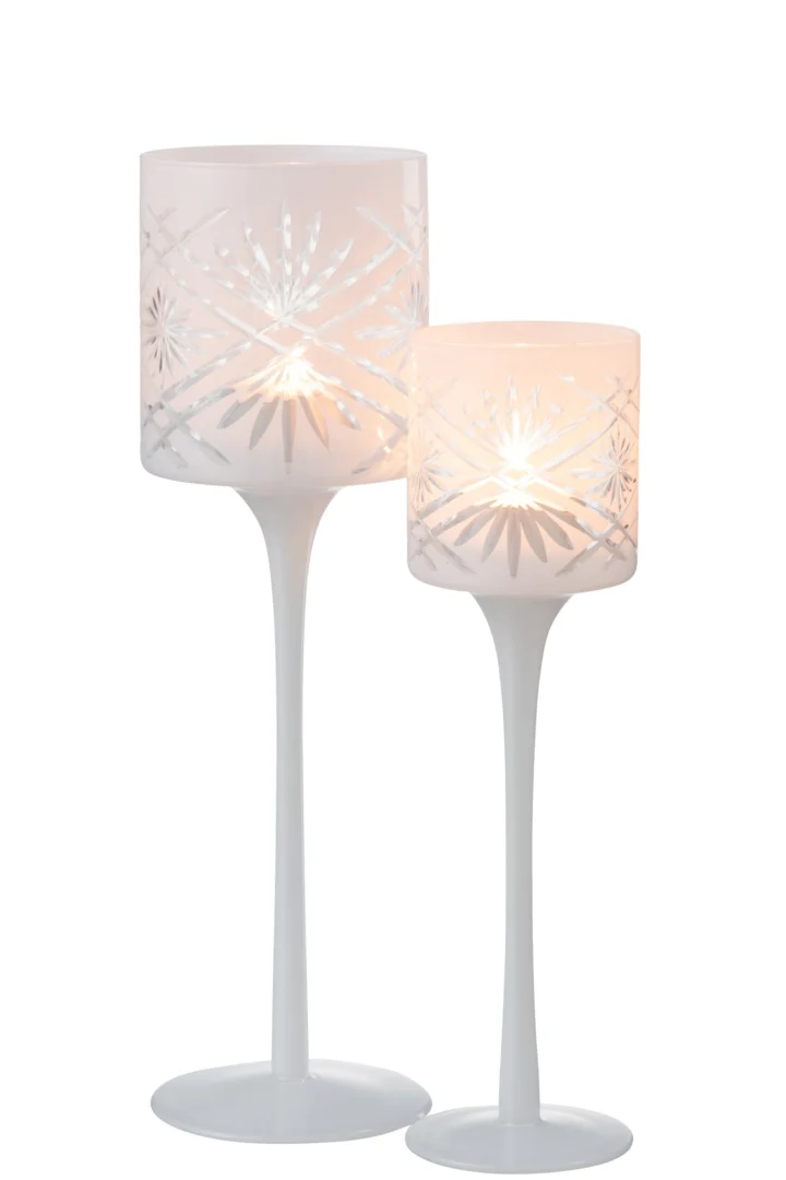 Theelichthouder Op Voet Santorini Glas Wit Groot