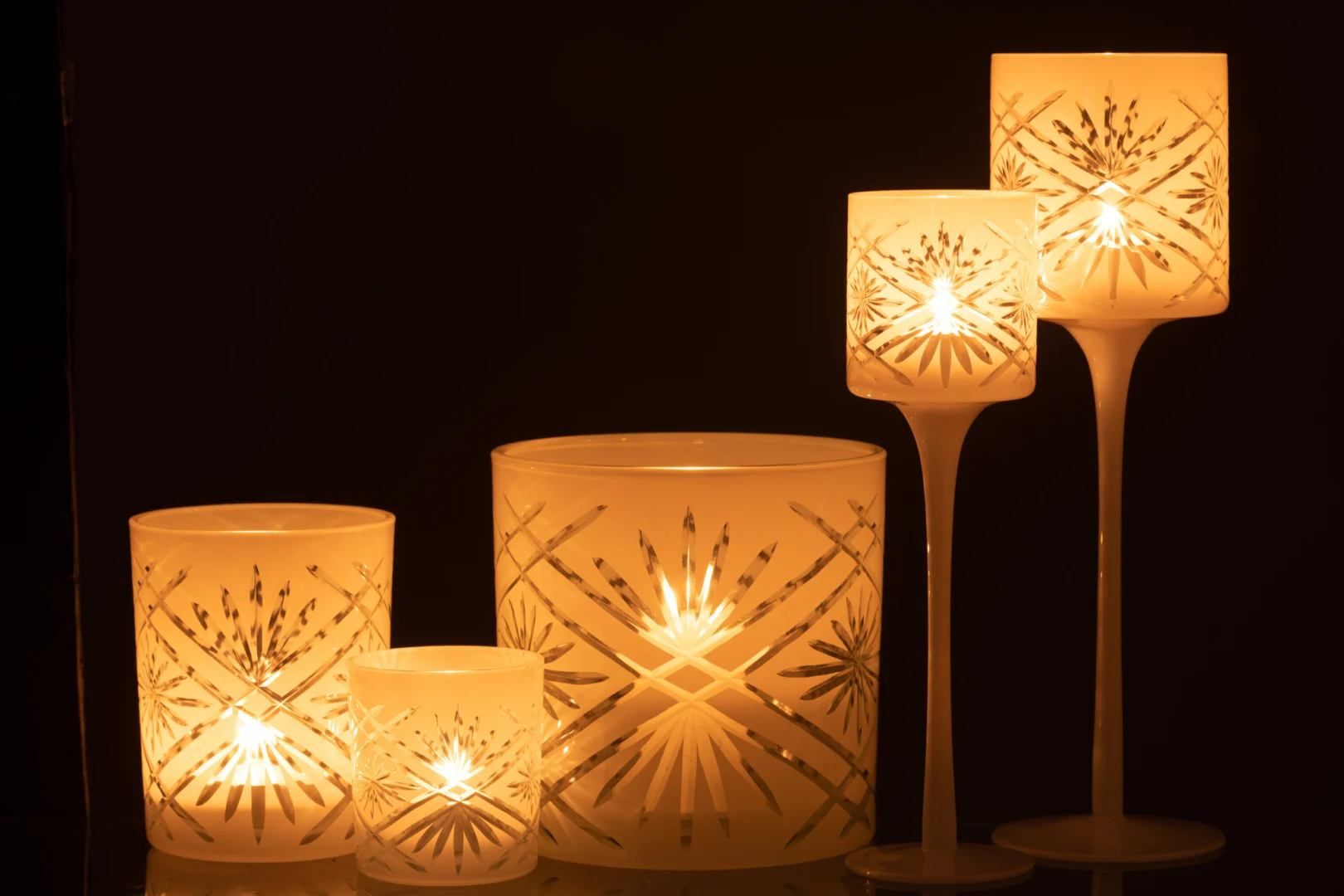 Gemaakt van volledig glas. Afnemen met een zachte, droge doek. Verwijder kaarsresten voorzichtig zodra deze zijn afgekoeld. Vermijd agressieve schoonmaakmiddelen en plaats altijd op een stabiele, hittebestendige ondergrond.