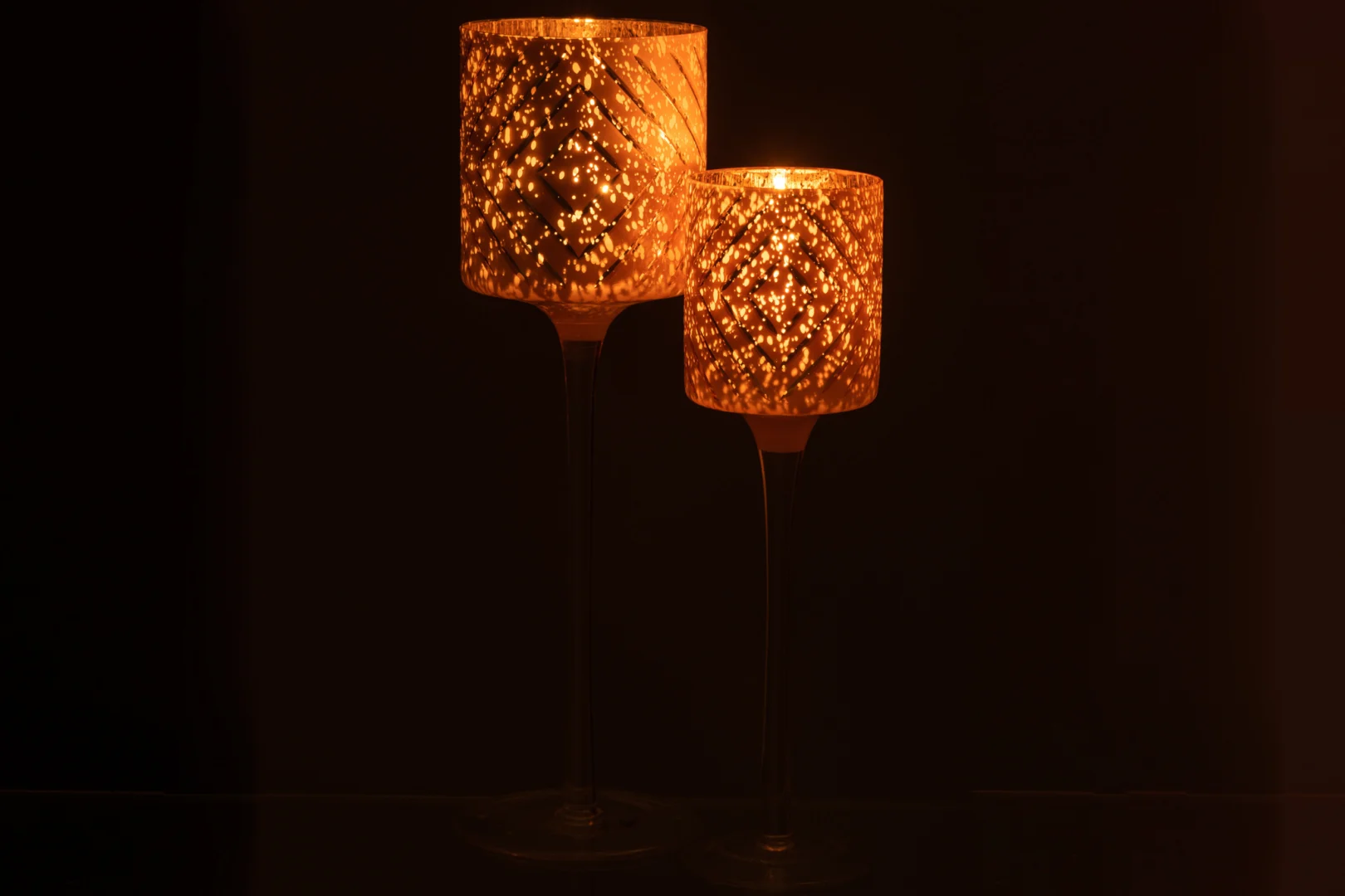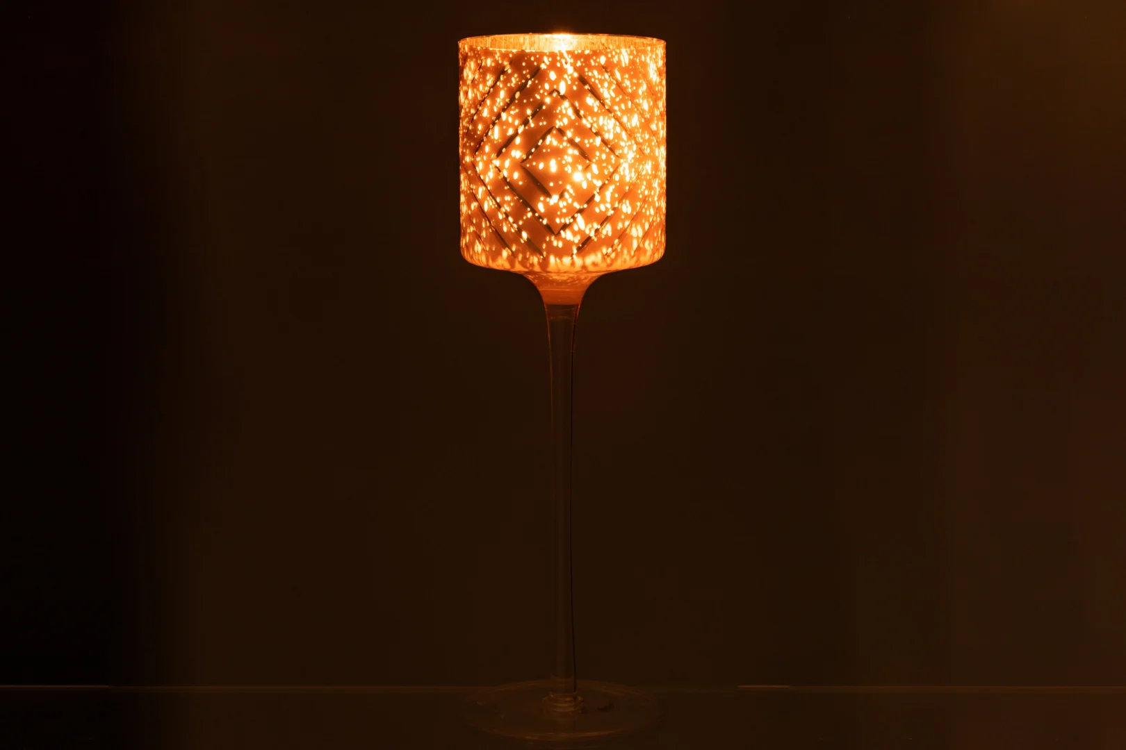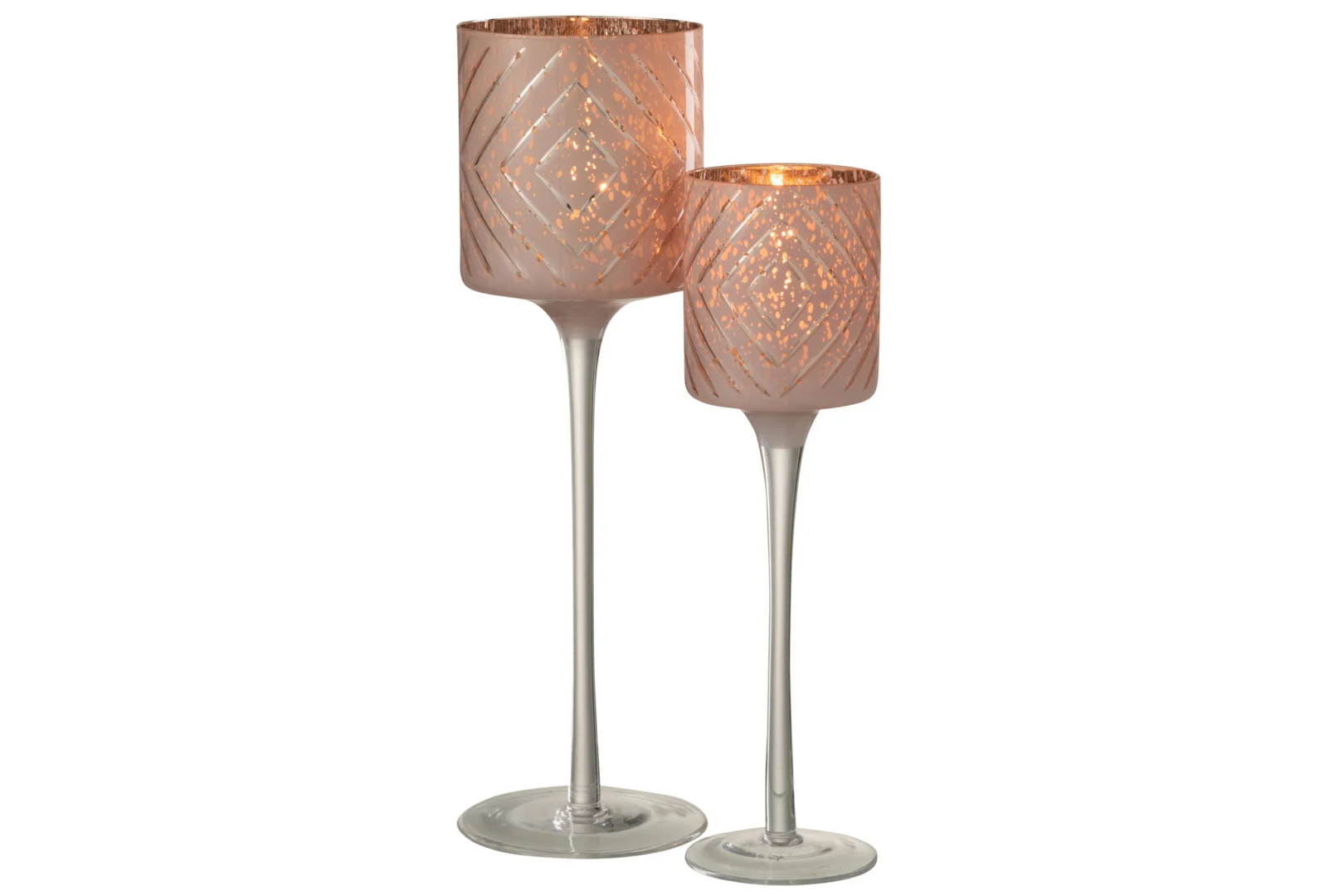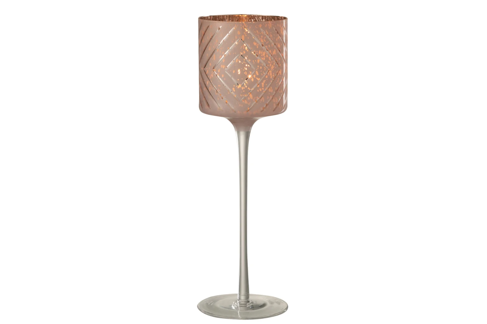 Theelichthouder Op Voet Zigzag Glas Zalm Groot