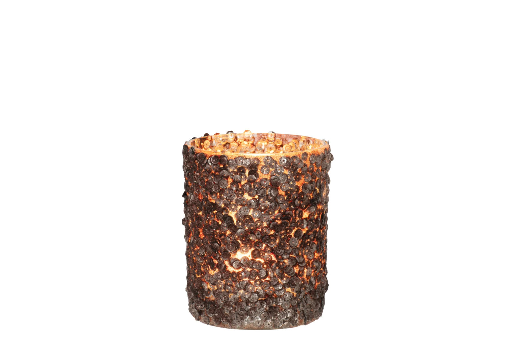 Breng een warme gloed in huis met deze bruine kaarsenhouder van glas. Het compacte formaat (10 x 10 x 12,5 cm) past perfect op elke tafel of vensterbank en geeft direct sfeer.