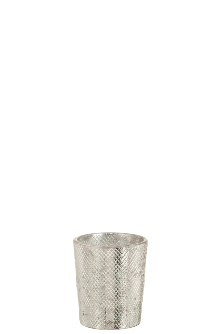Op een donkere winteravond geeft deze glazen theelichthouder een zachte, sfeervolle gloed. De zilverkleur reflecteert mooi en het compacte formaat past overal. Wel wat kwetsbaar bij verplaatsen. Ideaal voor wie subtiele, stijlvolle accenten in huis zoekt. Aanrader.