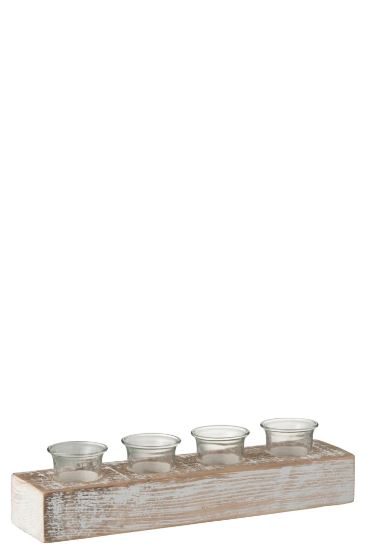 Theelichthouder Rechthoek Hout Witgewassen Set 4