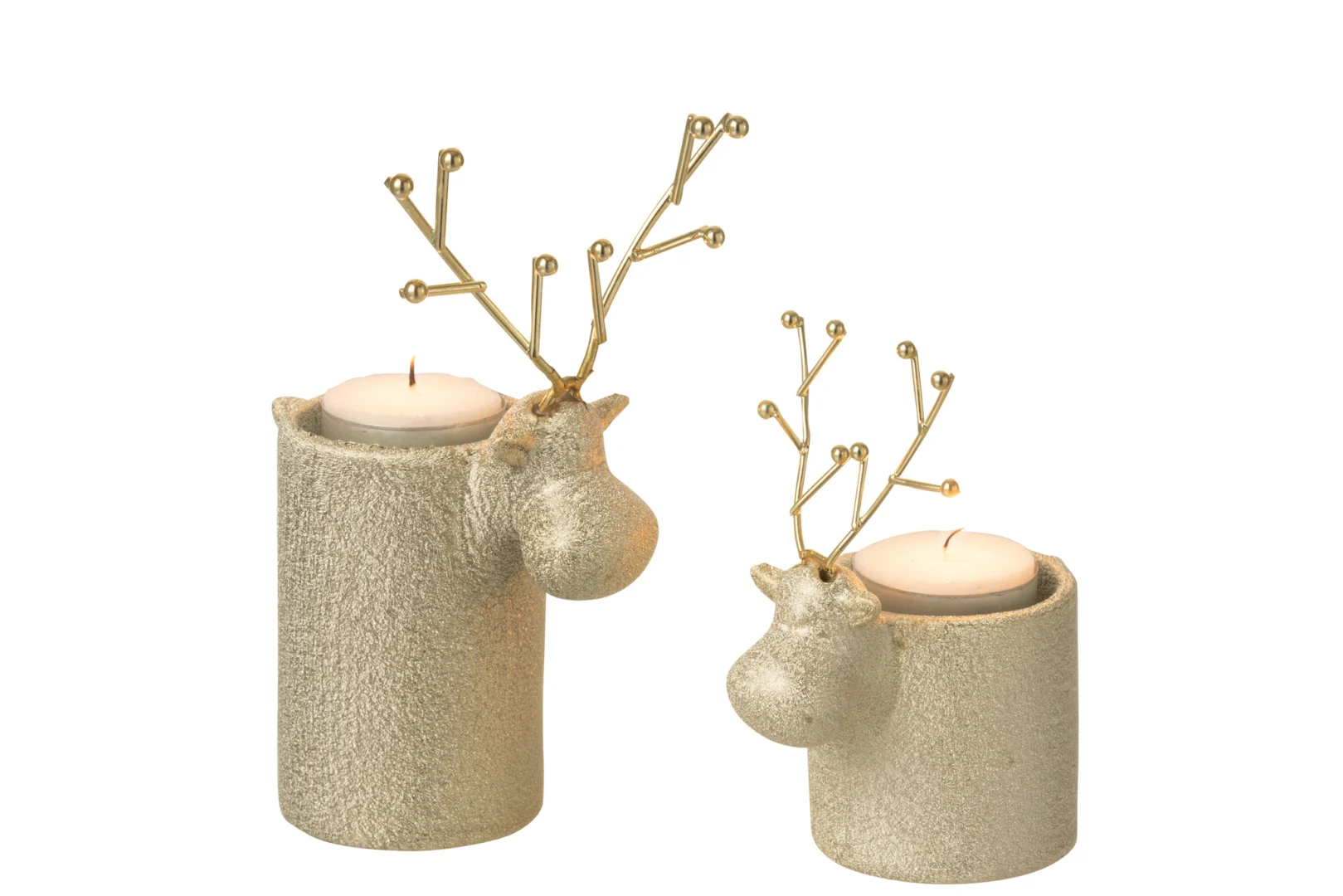 Theelichthouder Rendier Porselein Wit Goud Set 2