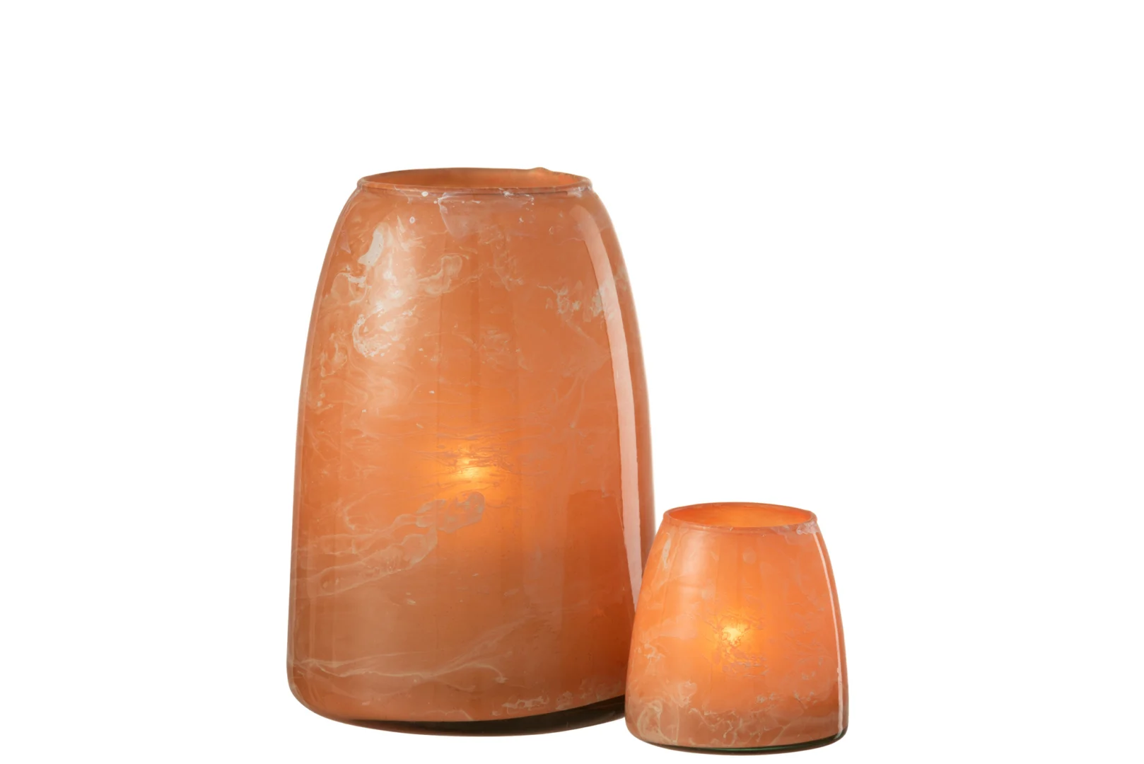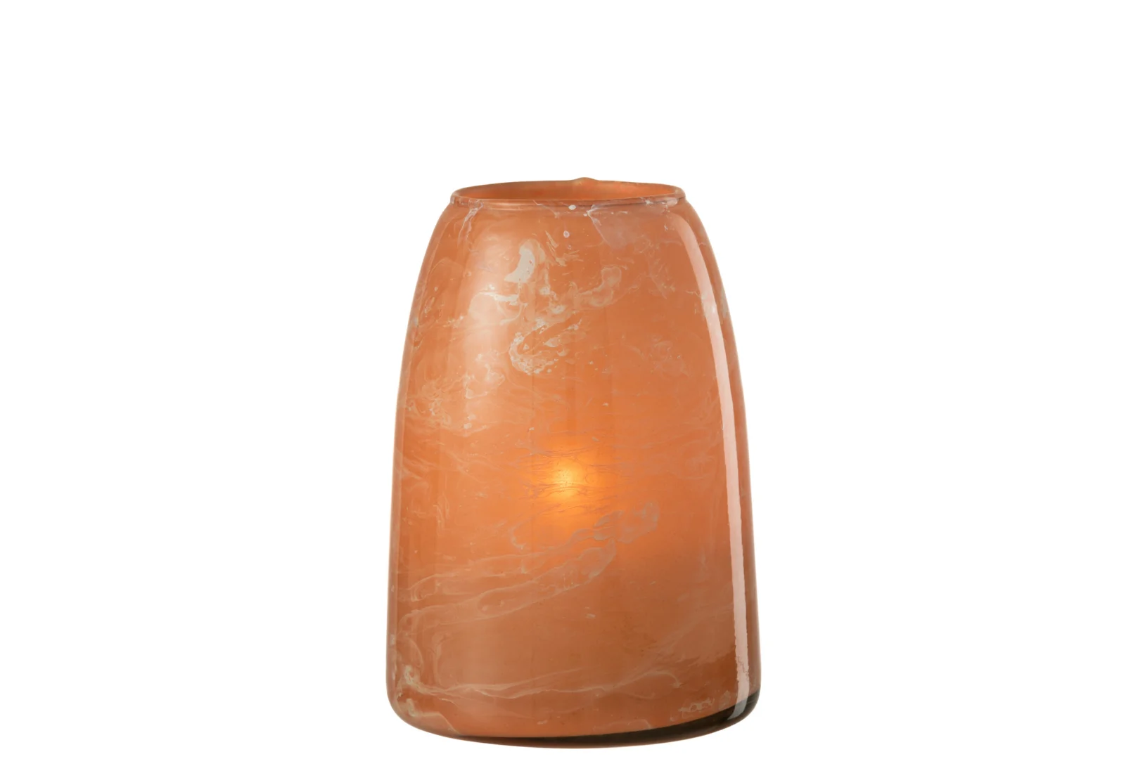 Tijdens een ontspannen diner zorgt deze glazen theelichthouder voor warme, sfeervolle verlichting. De diepe oranje tinten en royale afmetingen maken echt indruk. Door het gewicht is verplaatsen minder handig. Perfect voor liefhebbers van stijlvolle, rustieke accenten. Zeker het overwegen waard.