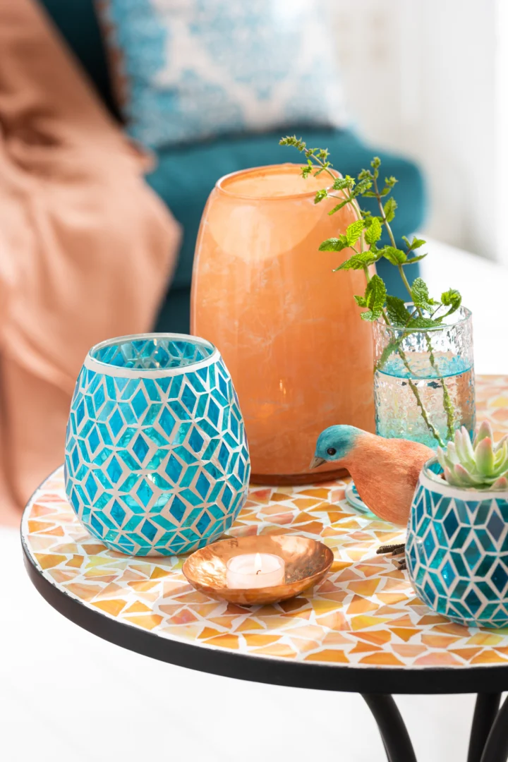 Op een herfstige avond zorgt deze glazen theelichthouder voor een warme gloed in de woonkamer. De oranje-roestkleurige tinten en het ruime formaat vallen op. Door het volledig glazen ontwerp is hij wel kwetsbaar. Ideaal voor sfeerliefhebbers. Een stijlvolle maar fragiele keuze.