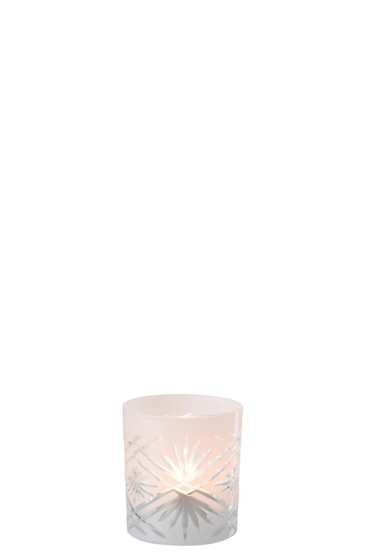 Ideaal voor theelichtjes of kleine kaarsen tijdens diners, me-time of gezellige avonden met vrienden. Combineer meerdere houders voor een speels effect of gebruik er één als subtiele blikvanger. Dankzij het neutrale wit voeg je warmte toe zonder je kleurpalet te doorbreken.