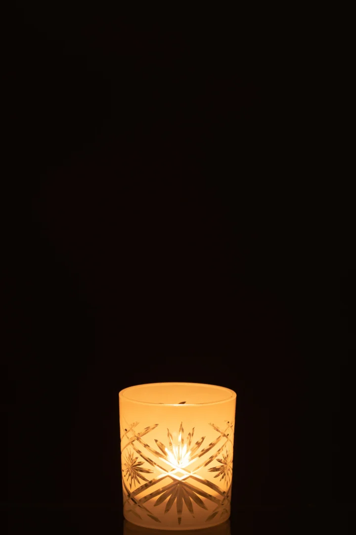 Materiaal: glas (100%). Reinig met een zachte, licht vochtige doek; droog na met een pluisvrije doek. Plaats op een hittebestendige ondergrond en laat brandende kaarsen nooit onbeheerd achter.