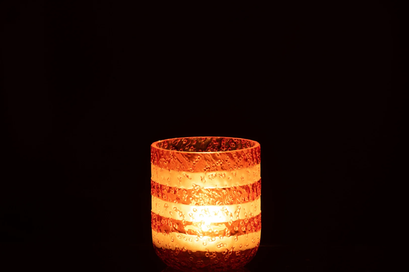 Breng meteen warmte in huis met deze glazen kaarsenhouder in een diepe oranje/roest tint. Compact en stijlvol, ideaal om elke hoek een zachte gloed te geven.