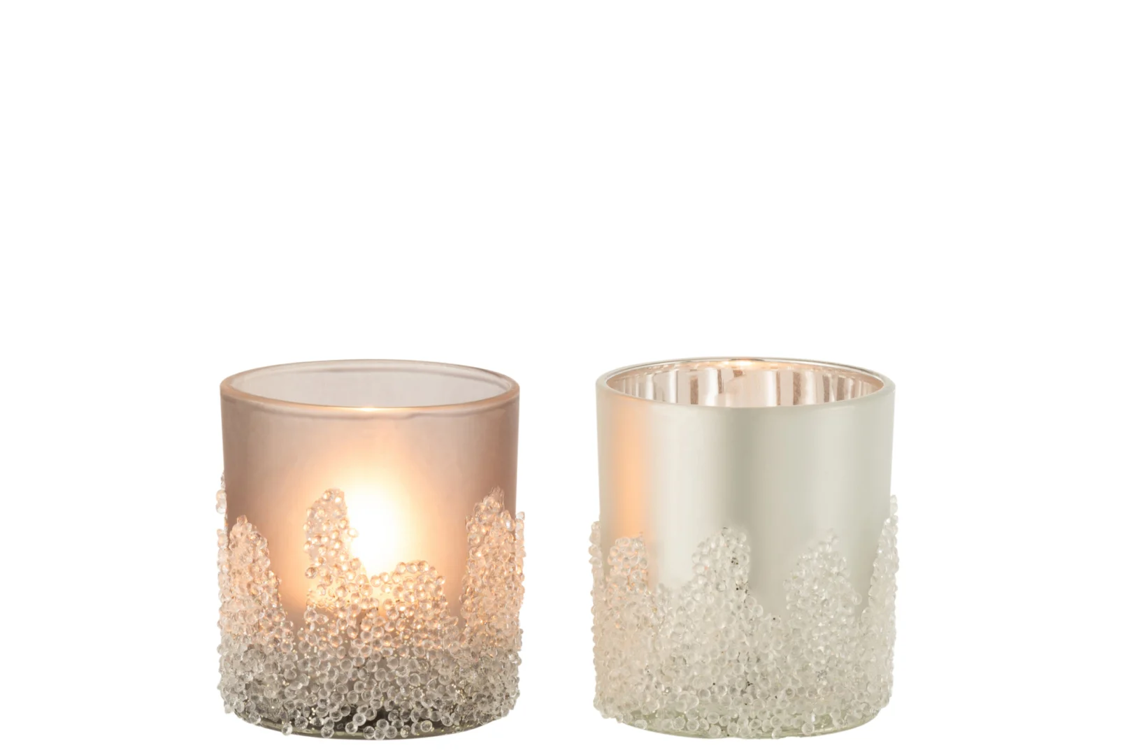 Breng warm, gedempt licht in huis met deze grijs/greige kaarsenhouder van glas. Dankzij het compacte formaat past hij op elke tafel, plank of vensterbank en geeft hij direct sfeer.