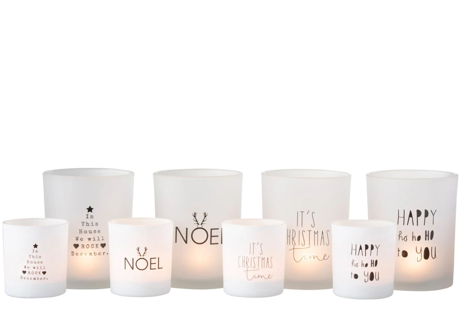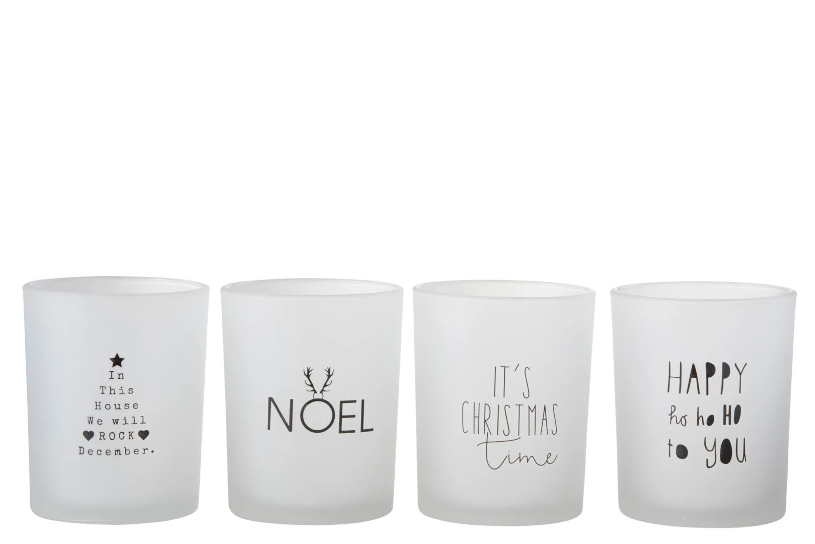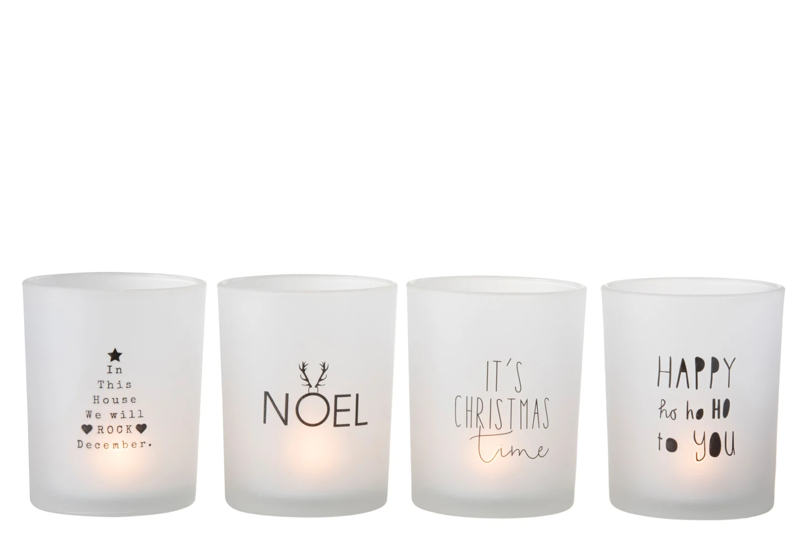 Theelichthouder Tekst Glas Wit Zwart Groot Set 4