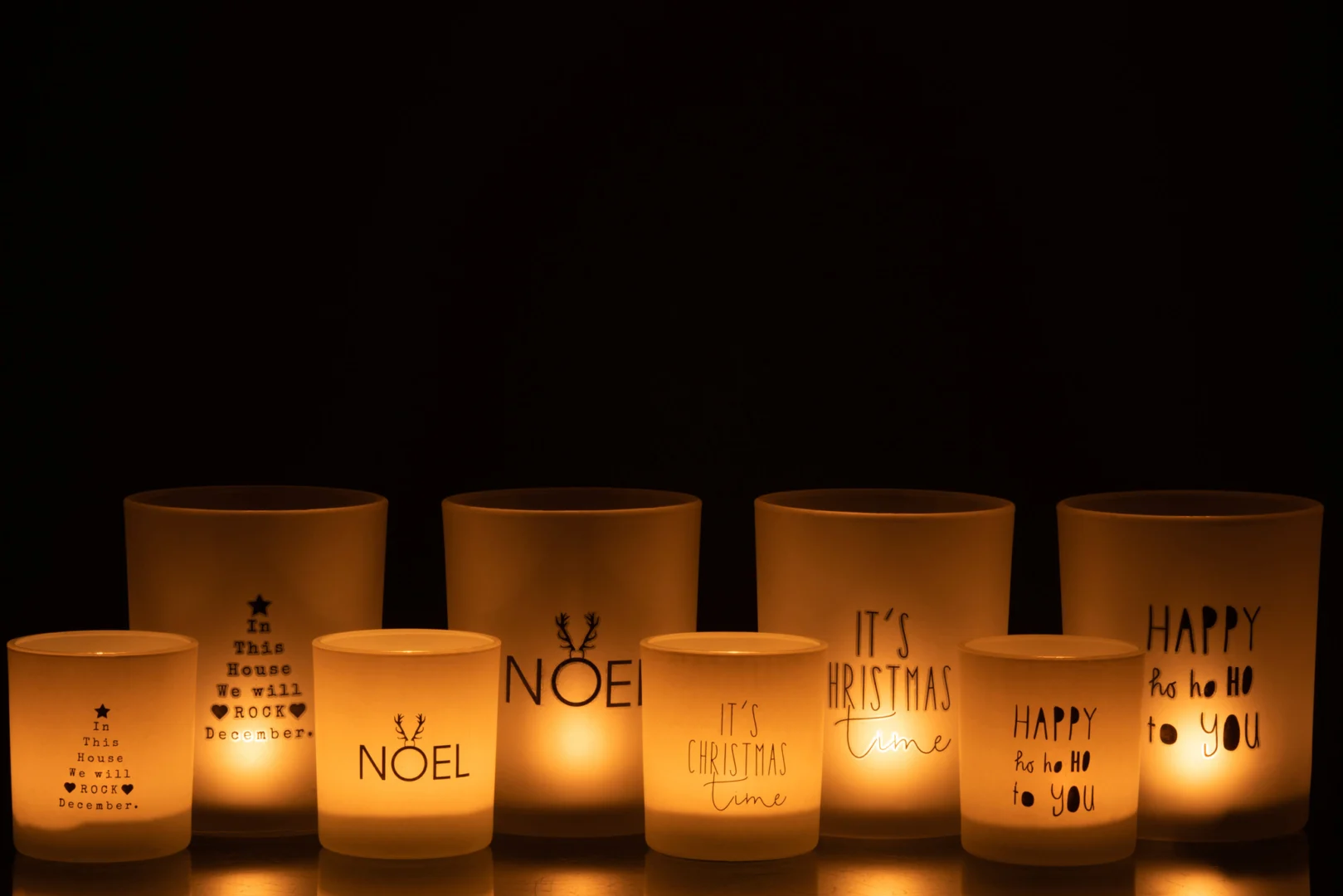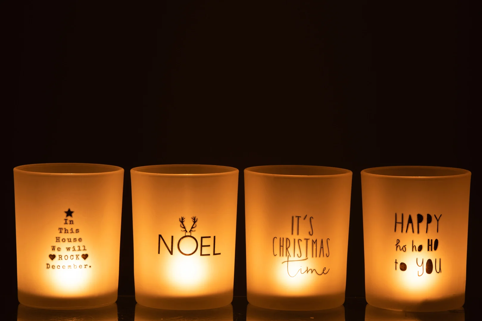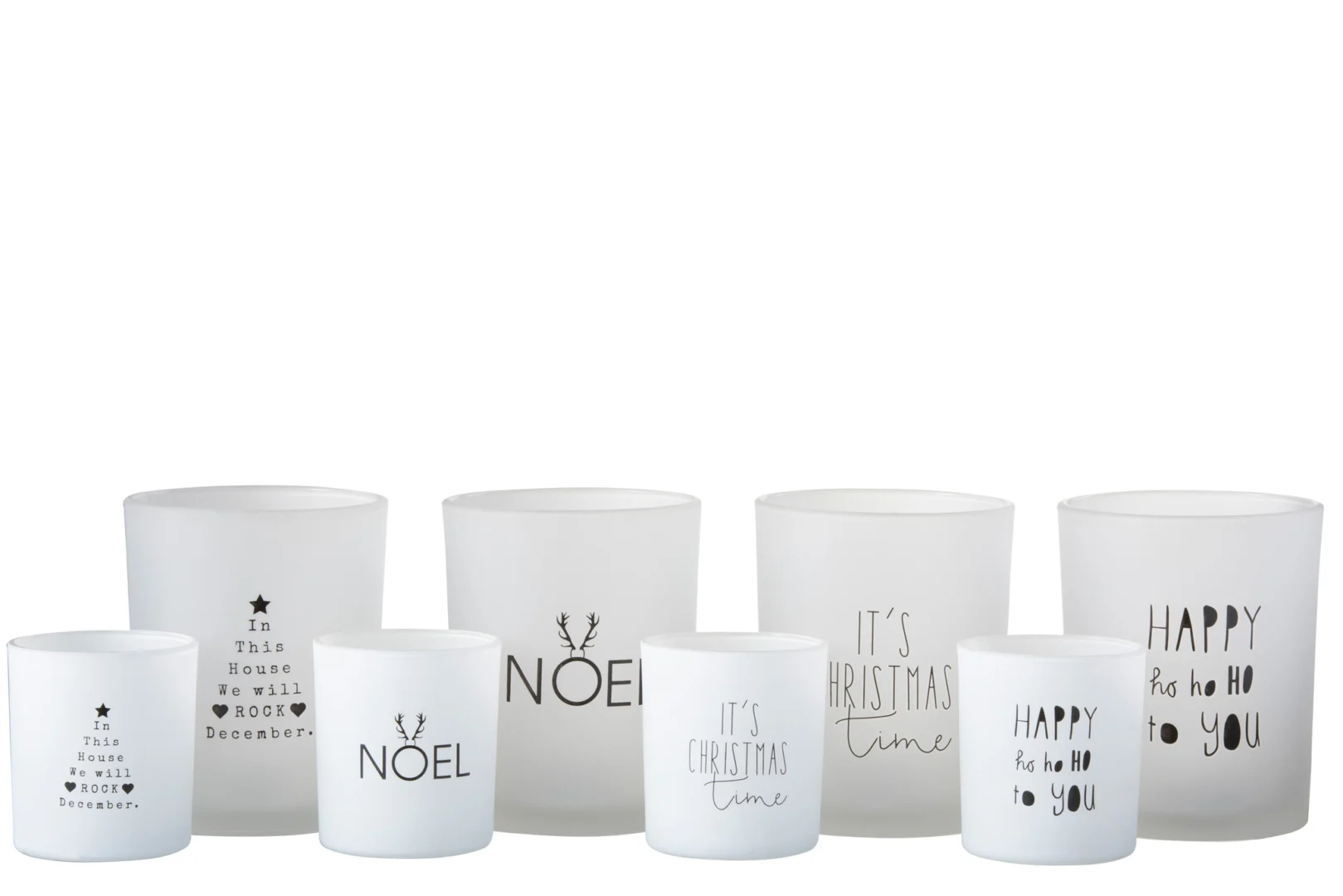 Theelichthouder Tekst Glas Wit Zwart Groot Set 4