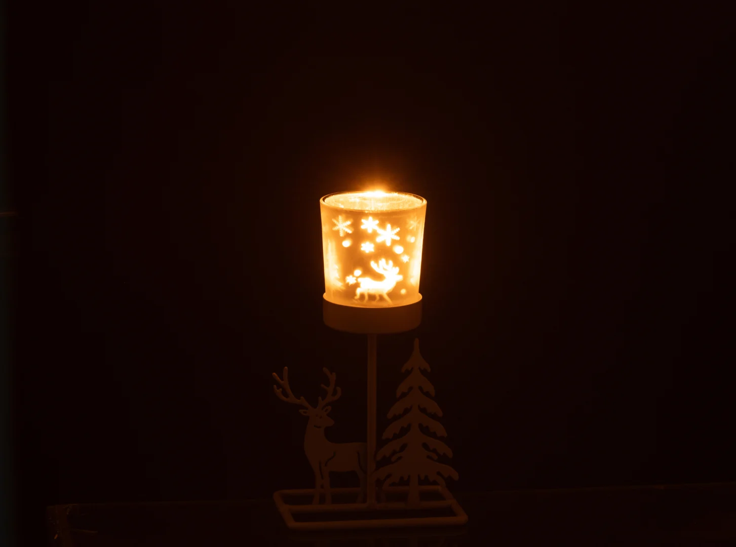 Sfeervolle theelichthouder, perfect voor winteravonden en feestelijke tafels.
