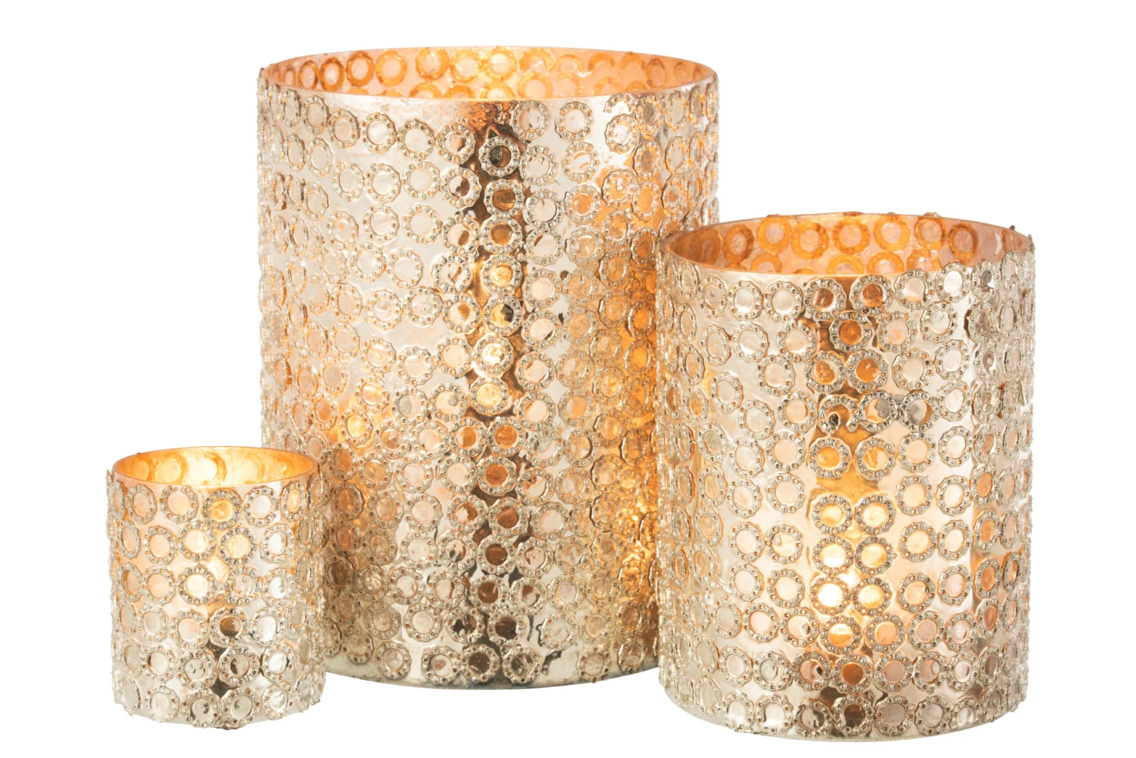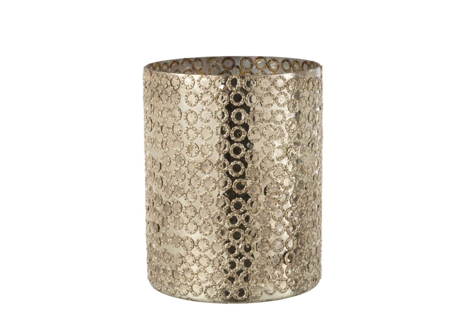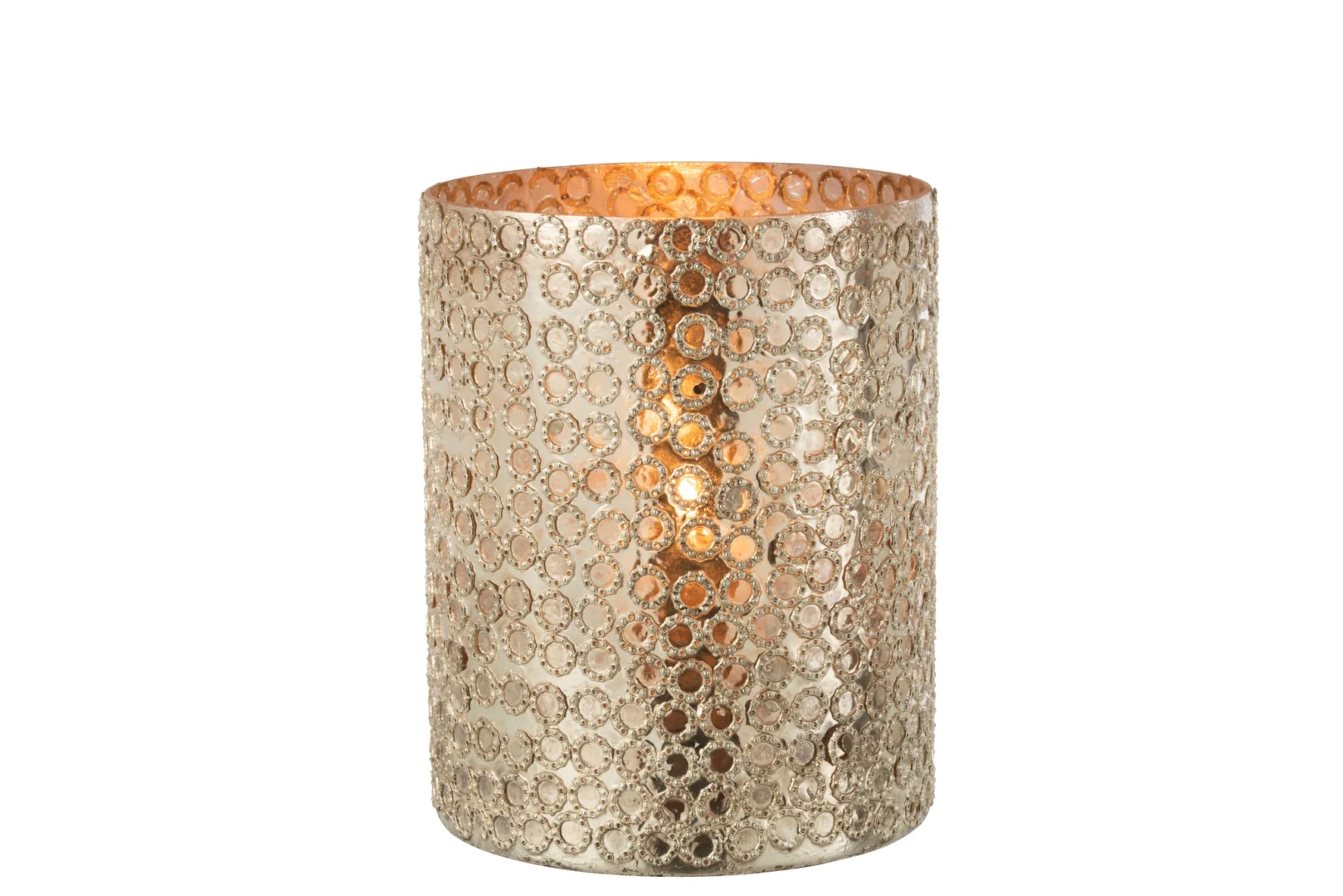 Maak het direct gezellig met deze zilverkleurige glazen kaarsenhouder. De tijdloze look en subtiele glans laten kaarslicht prachtig tot leven komen, perfect voor op tafel, vensterbank of dressoir.