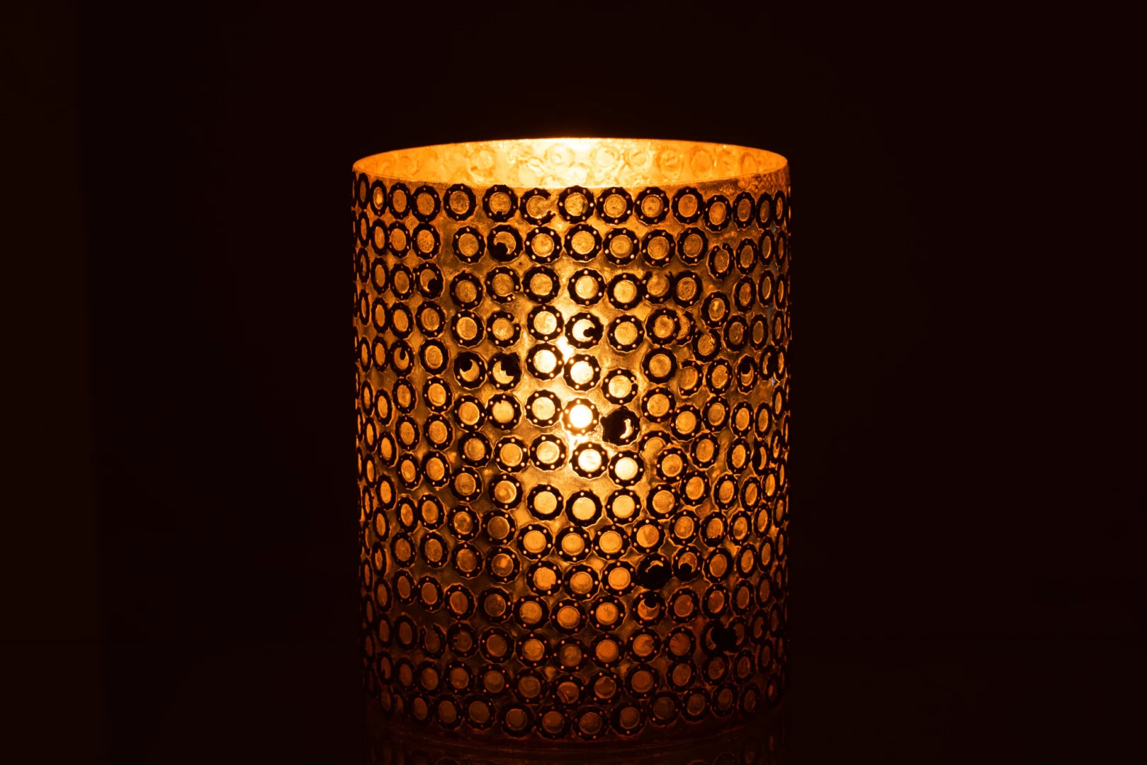 De weerkaatsing van het glas geeft een warme, uitnodigende gloed die elk moment bijzonder maakt. Gebruik hem solo voor een minimalistische look of combineer meerdere houders voor een sfeervolle set-up. Geschikt voor stompkaarsen of grote waxinelichtjes; ideaal voor een diner, ontspannen avond of een stijlvol accent in de hal.