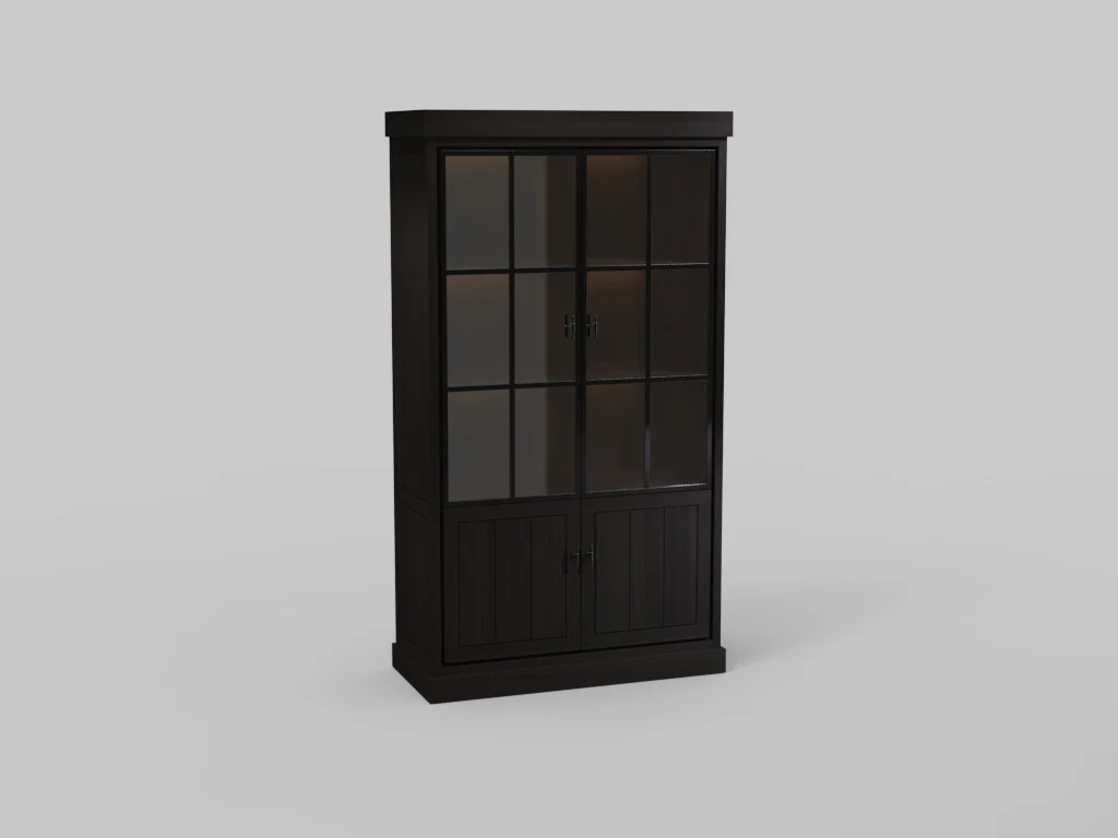 Deze opbergkast brengt orde zonder het interieur te verzwaren. Het slanke silhouet maakt opbergen onderdeel van je stijl; de robuuste basis draagt moeiteloos dagelijks gebruik. Diepe planken zijn groot genoeg voor volumineus linnengoed of pronkstukken, terwijl de glazen fronten lucht en licht bewaren.