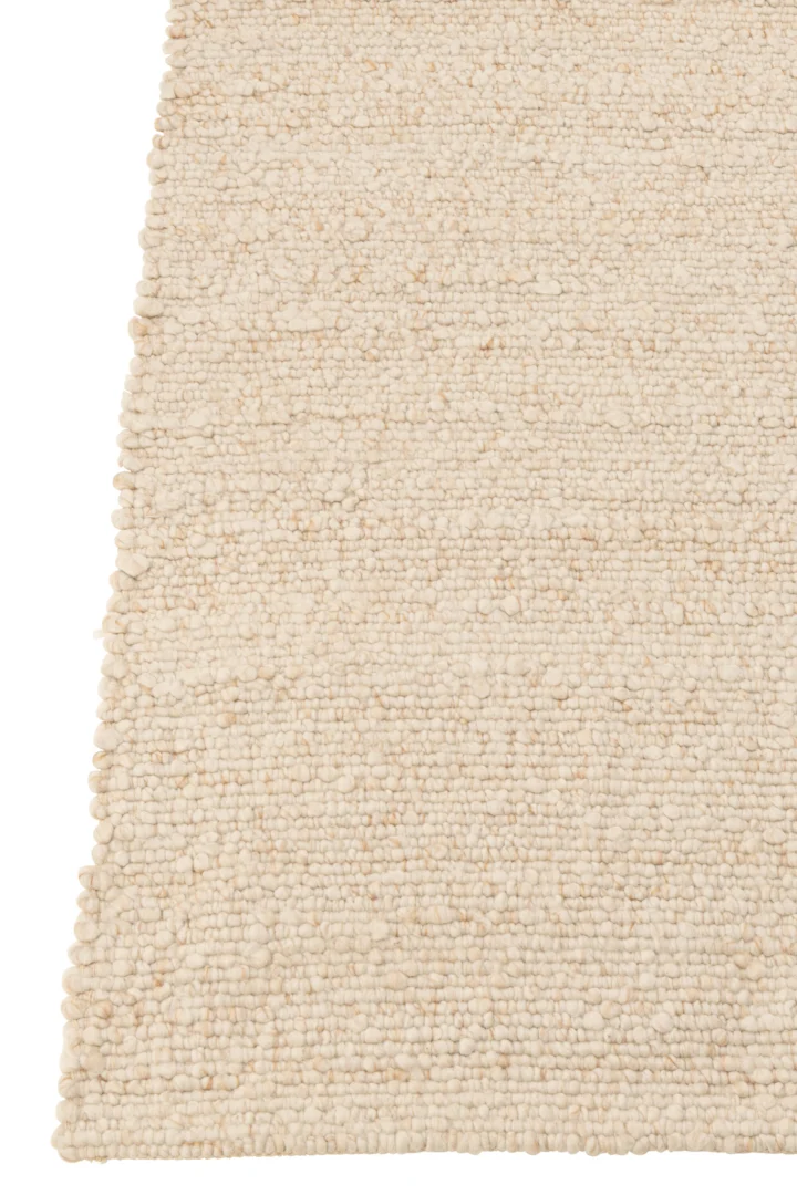 Zacht, groot vloerkleed; past goed in lichte interieurs, iets lastig te reinigen.