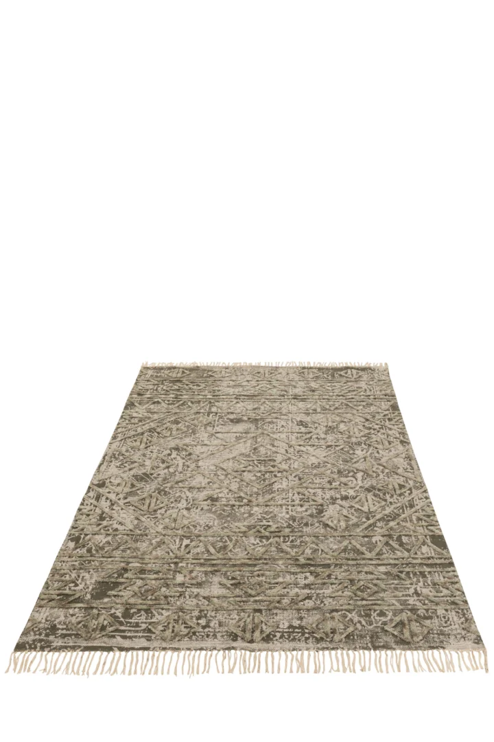 Groot katoenen vloerkleed met lichte stof en rustige tinten; verschuift wel snel. Geschikt voor lichte woongebruikers.